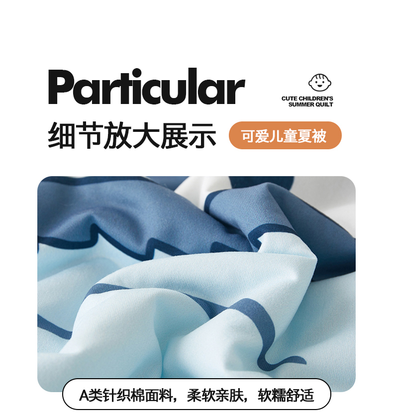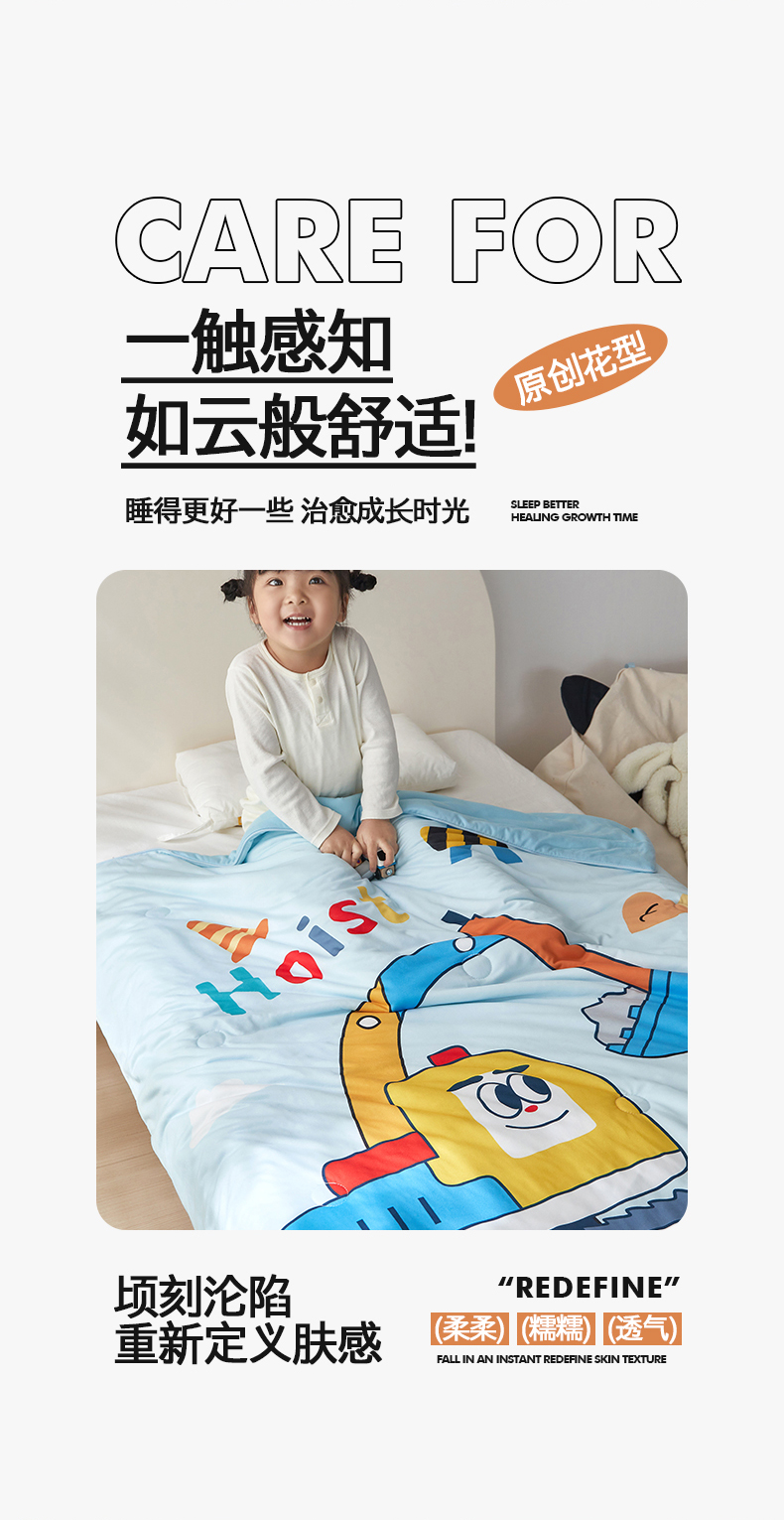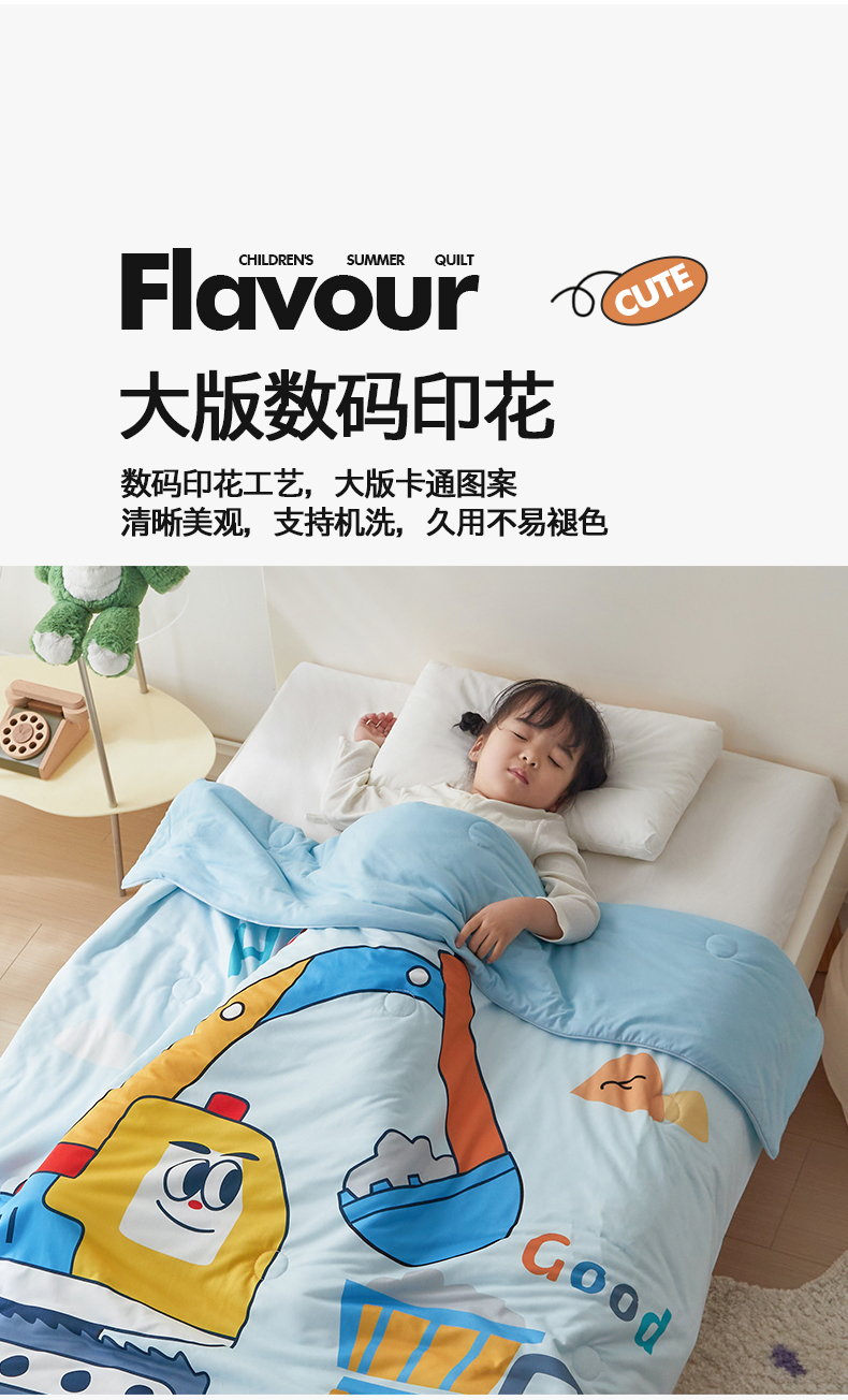 商品名称:荷马之梦 2025新款卡通数码印花大版针织棉儿童夏被-绵绵系列 工程小车队