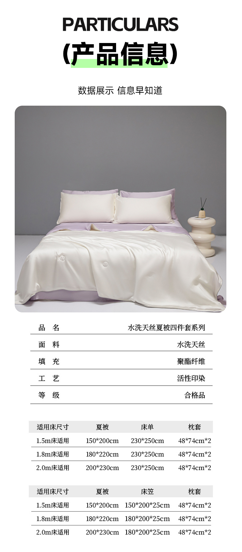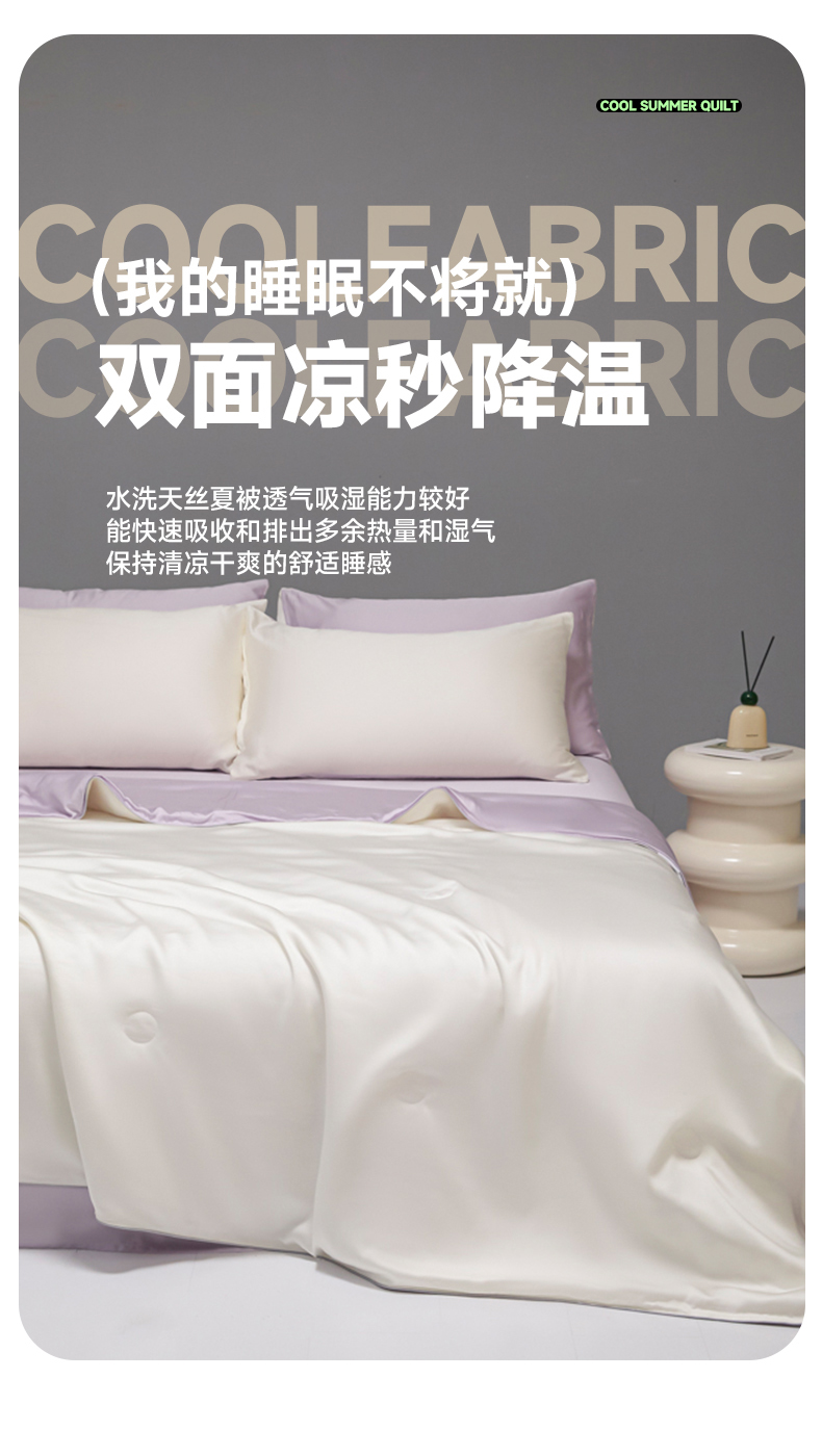 当前位置: 91家纺网 > 商品网购 > 床品套件 > 四件套 > 夏被四件套 > 利欧 2025新款纯色双拼水洗天丝夏被四件套 夏被-淡紫+米黄