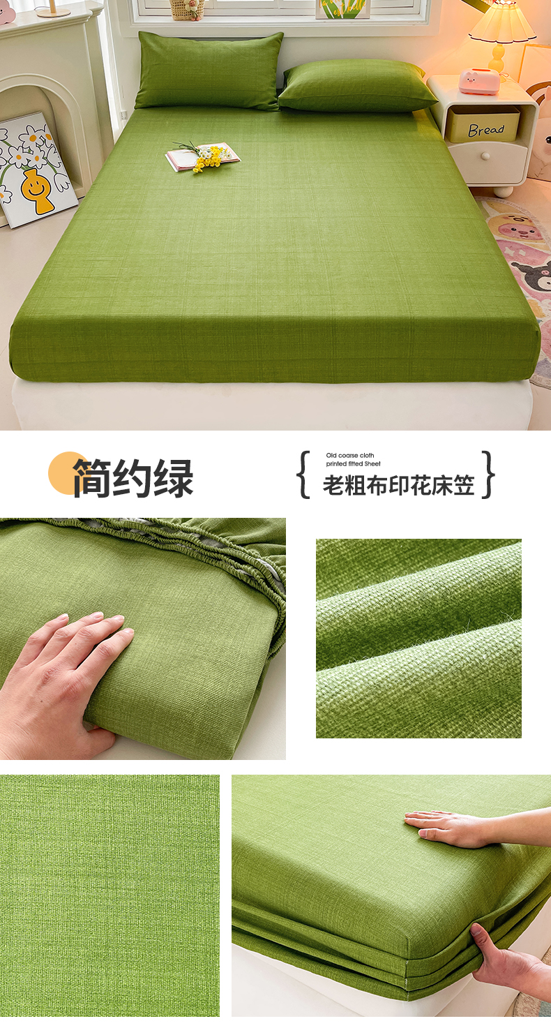 • 91家纺网 家纺一手货源 找家纺 晓时候2025新款老粗布床笠凉席 简约绿