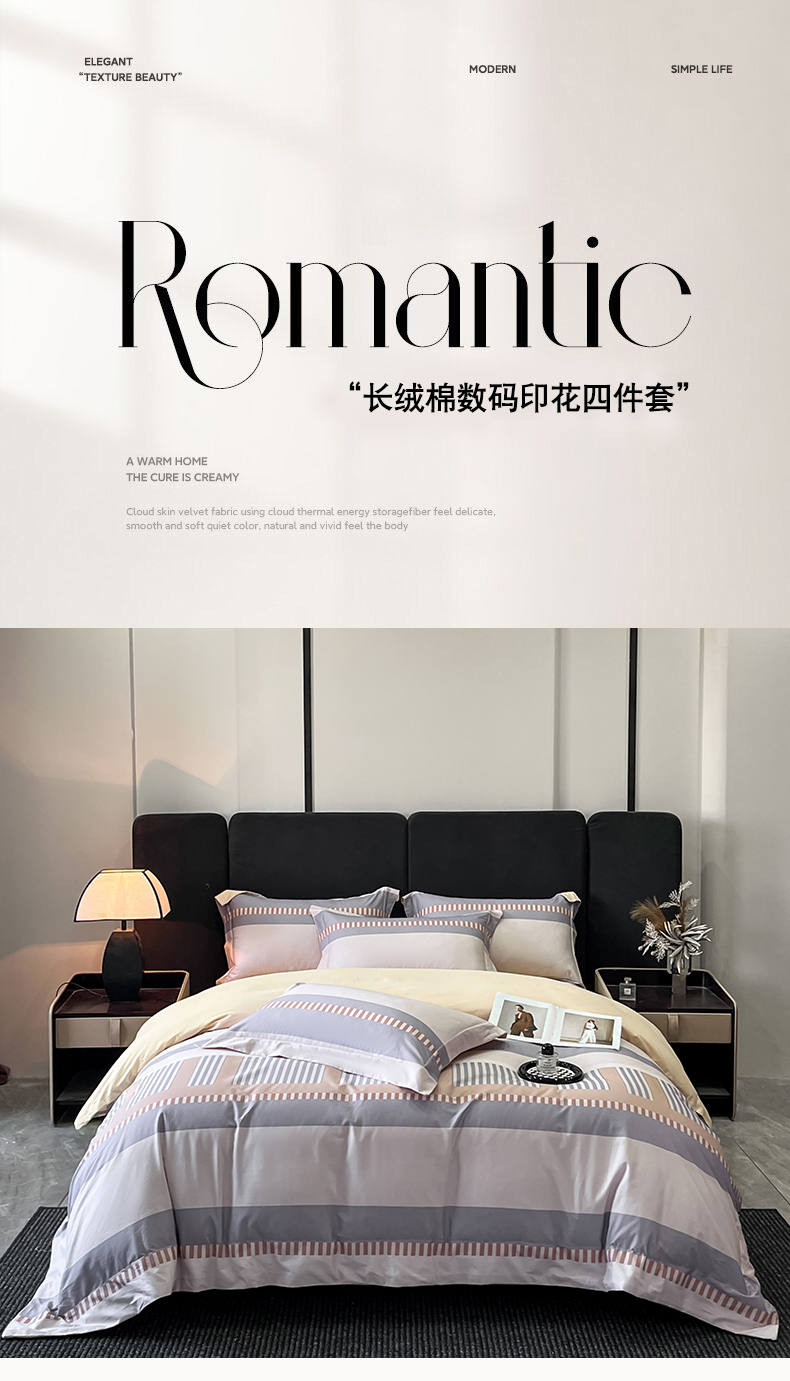(总)(控价)2025新款 专版花型 高克重A类 全棉长绒棉数码印花四件套-布拉格之恋