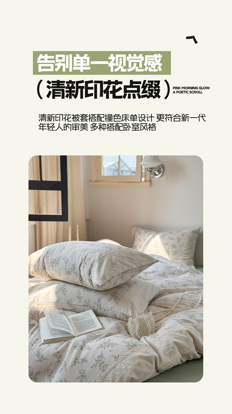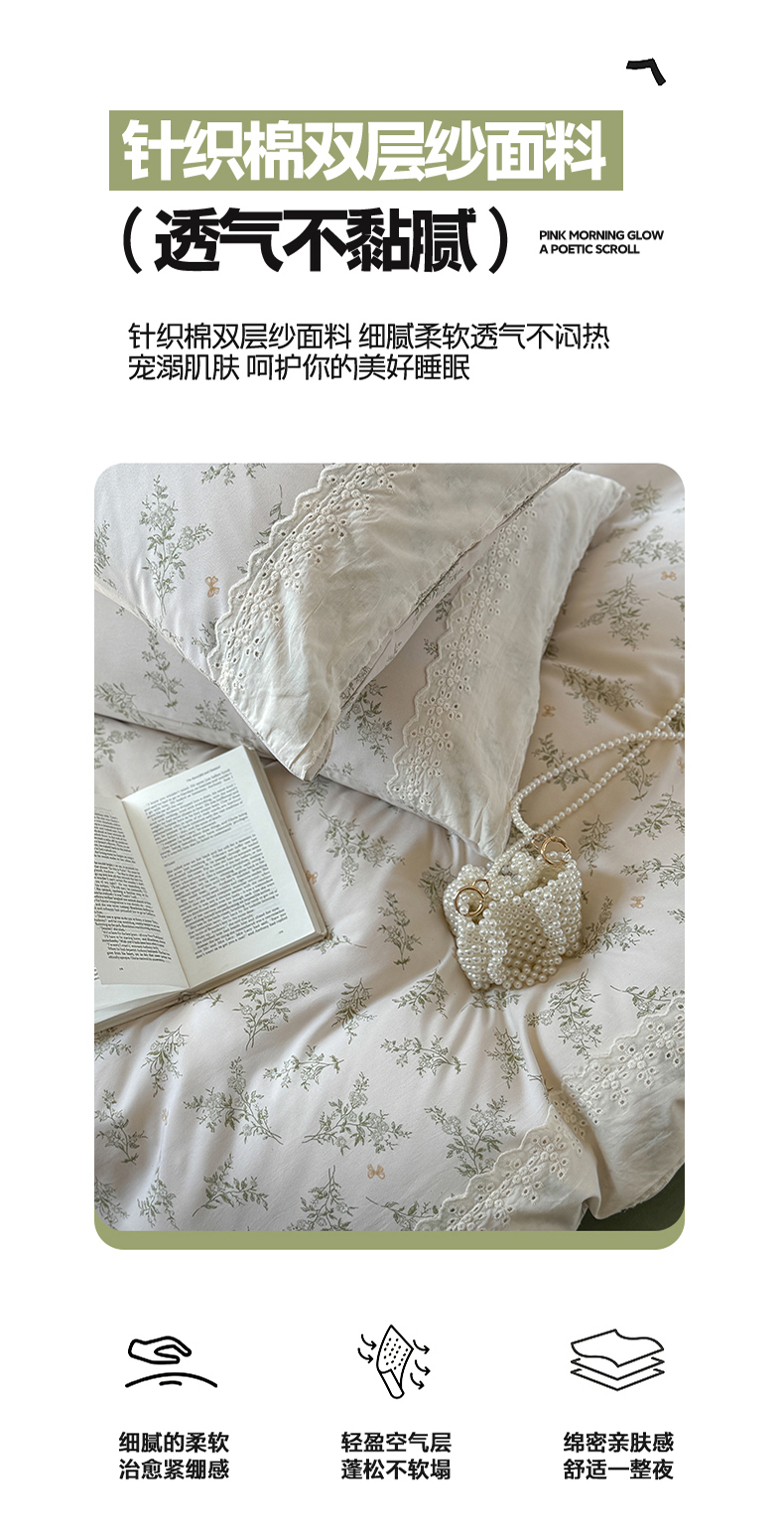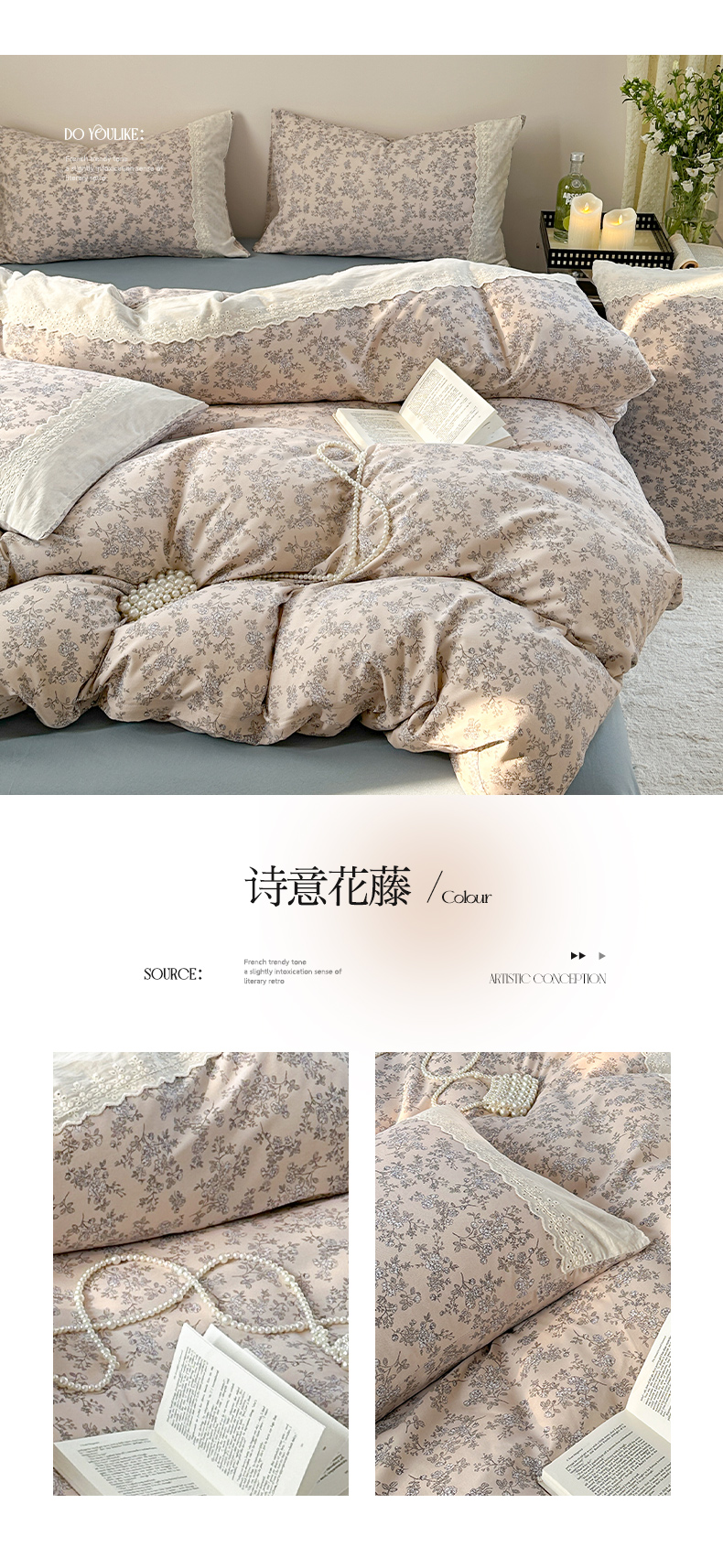 当前位置: 91家纺网 > 商品网购 > 床品套件 > 四件套 > 针织棉四件套 > 2025新款A类针织棉双层纱蕾丝花边四件套 随风摇曳