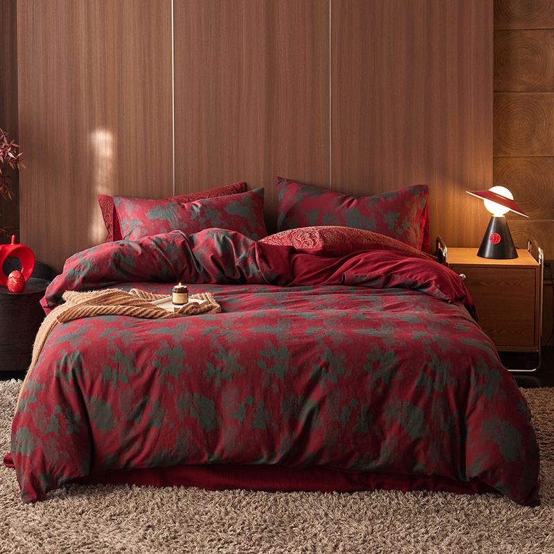 (总)简家居2025新款40支全棉色织空气棉四件套-鎏金喜韵,鎏金喜韵
