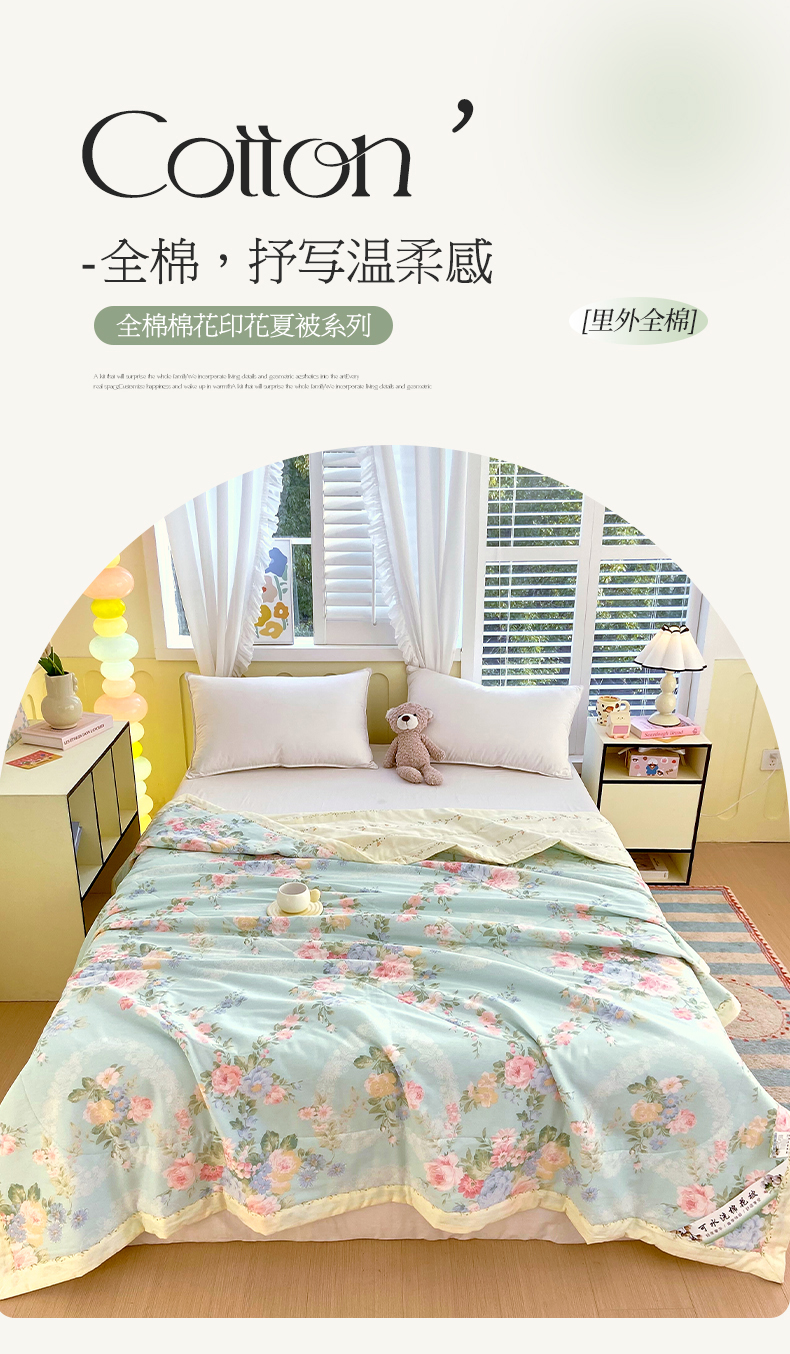 2025新款A类全棉棉花夏被纯棉夏被 被子被芯 嫣语花开-兰