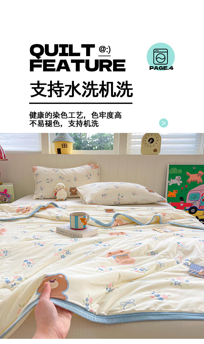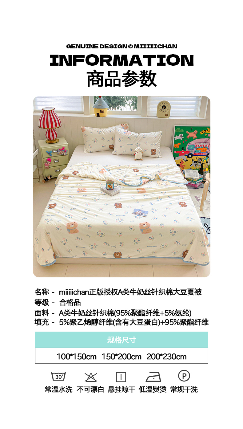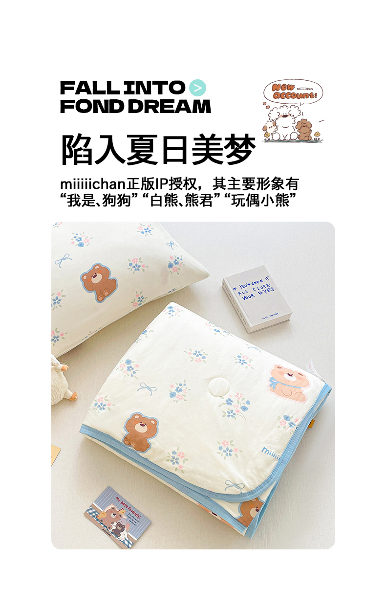 商品名称:桃子家居 2025新款A类高品质正版授权miiiiichan可爱卡通狗狗白熊女孩牛奶丝针织棉夏被夏凉被空调被 针织棉miiiiichan-花花熊君