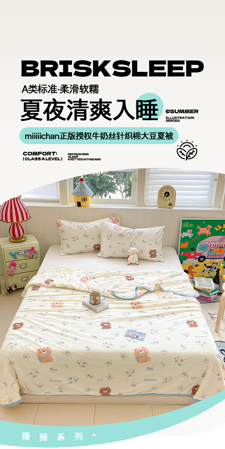 被子 > 夏被 > 桃子家居 2025新款A类高品质正版授权miiiiichan可爱卡通狗狗白熊女孩牛奶丝针织棉夏被夏凉被空调被 针织棉miiiiichan-花花熊君