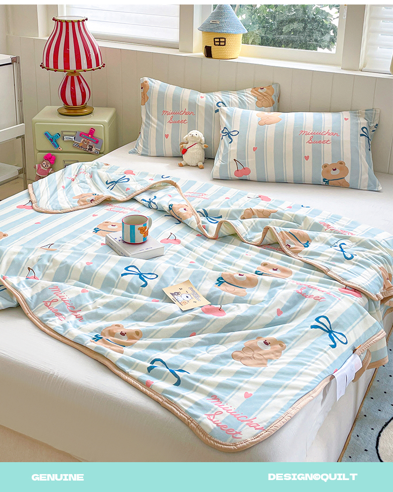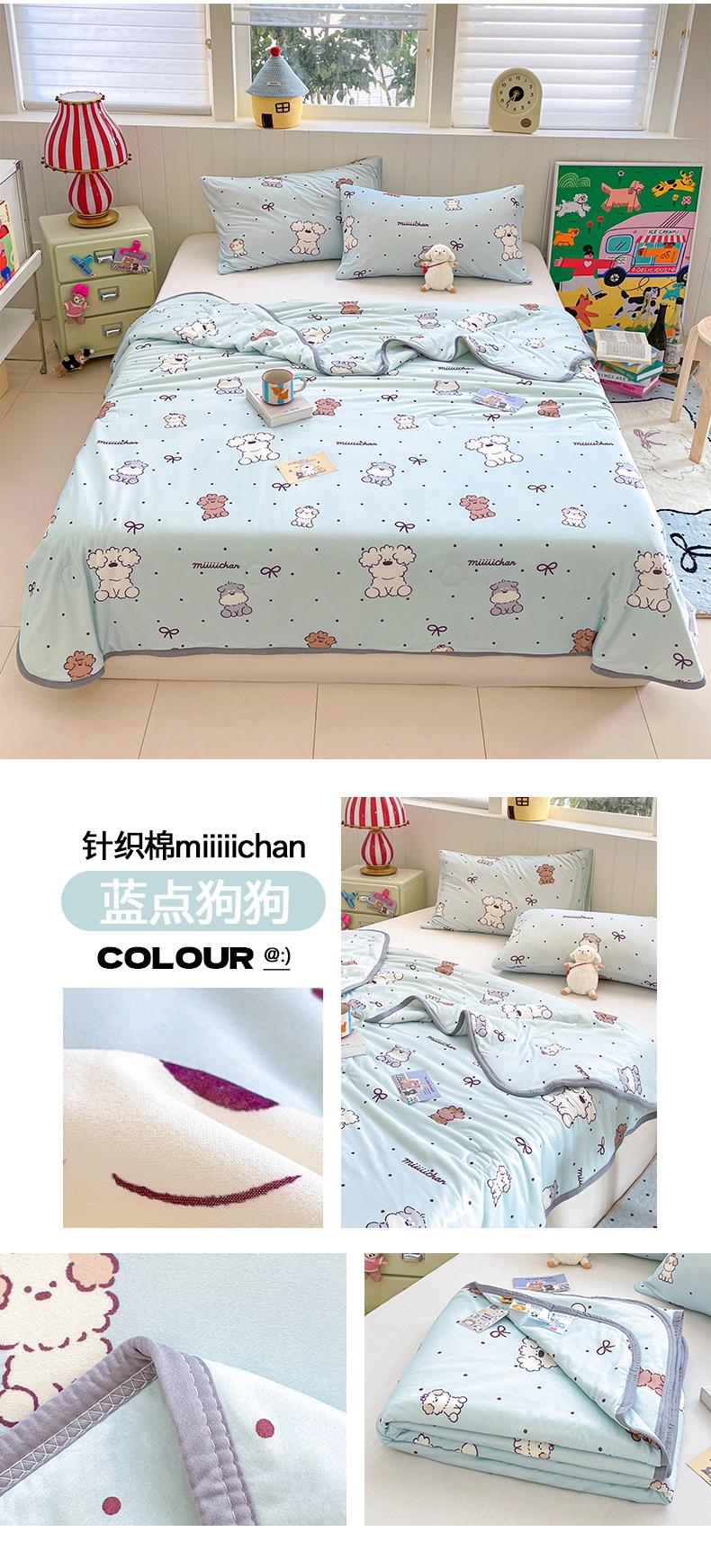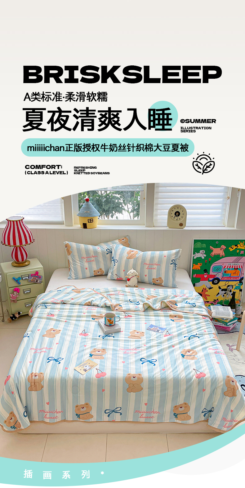 桃子家居 2025新款A类高品质正版授权miiiiichan可爱卡通狗狗白熊女孩牛奶丝针织棉夏被夏凉被空调被 针织棉miiiiichan-樱桃熊君