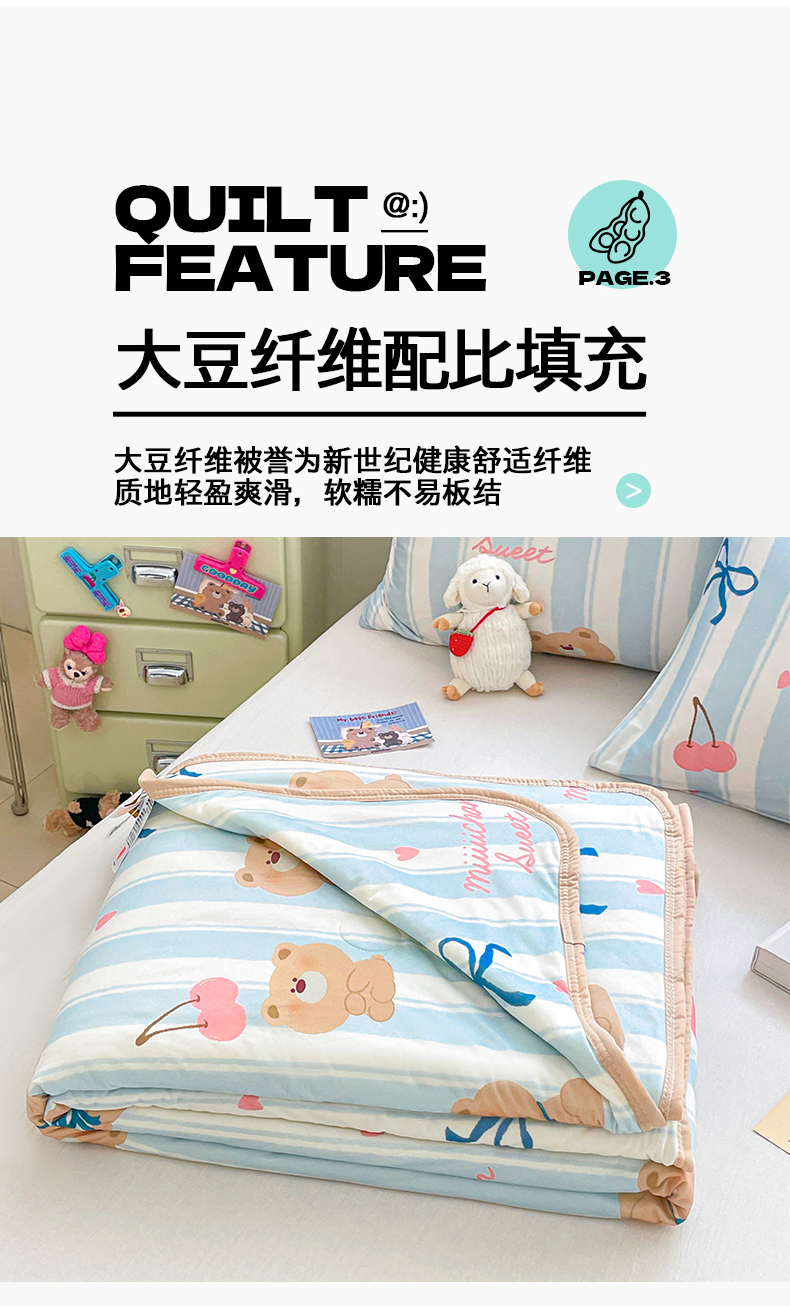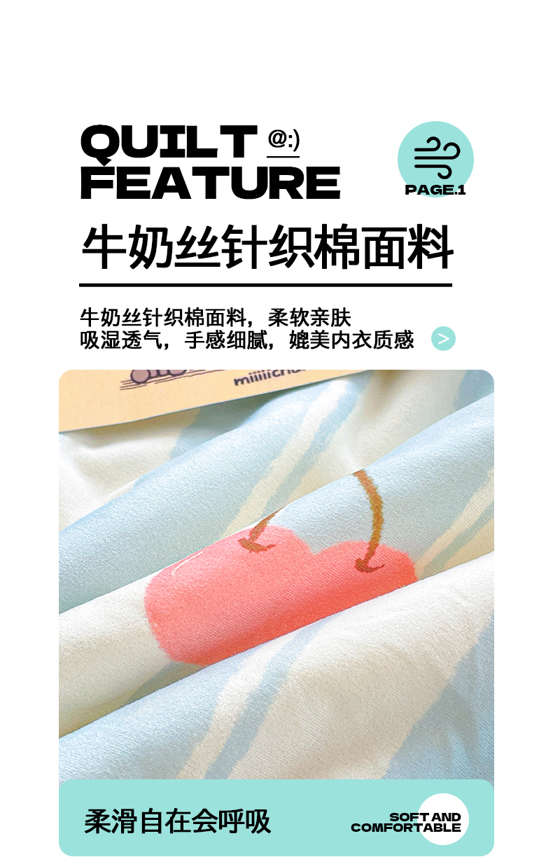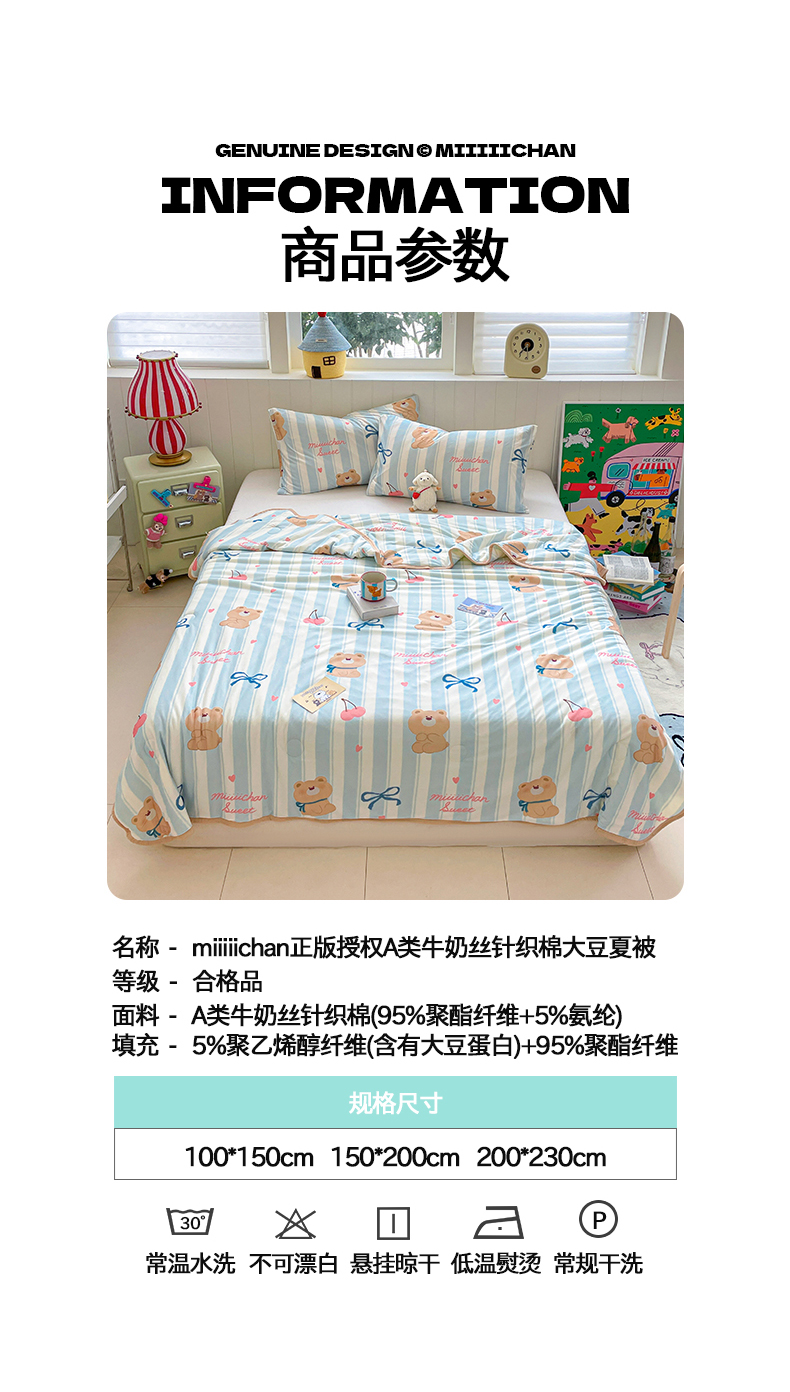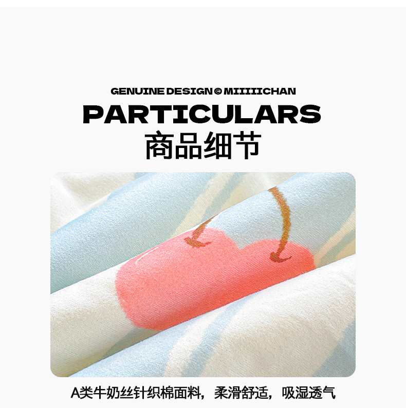 商品名称:桃子家居 2025新款A类高品质正版授权miiiiichan可爱卡通狗狗白熊女孩牛奶丝针织棉夏被夏凉被空调被 针织棉miiiiichan-樱桃熊君