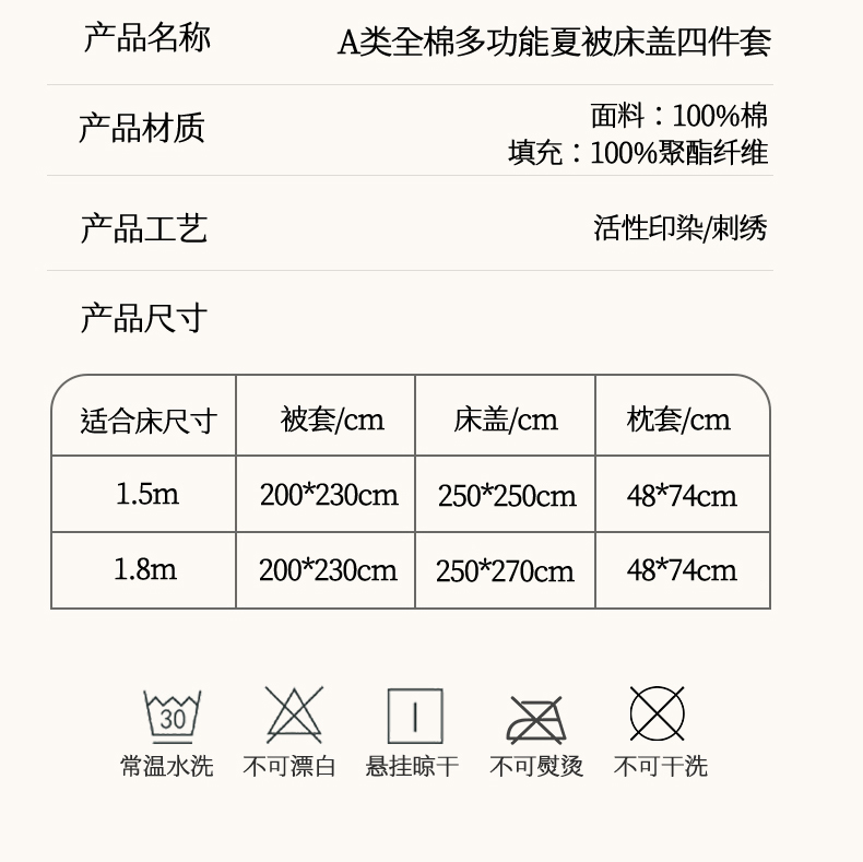 2.5x2.7m床盖+2.0x2.3m夏被+枕套一对