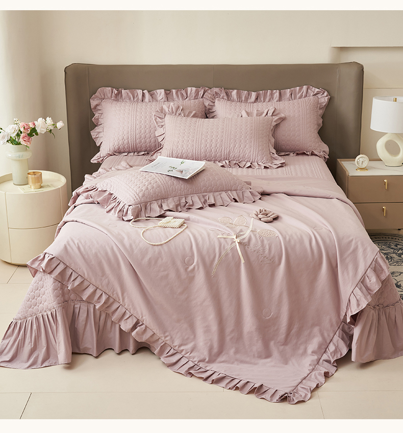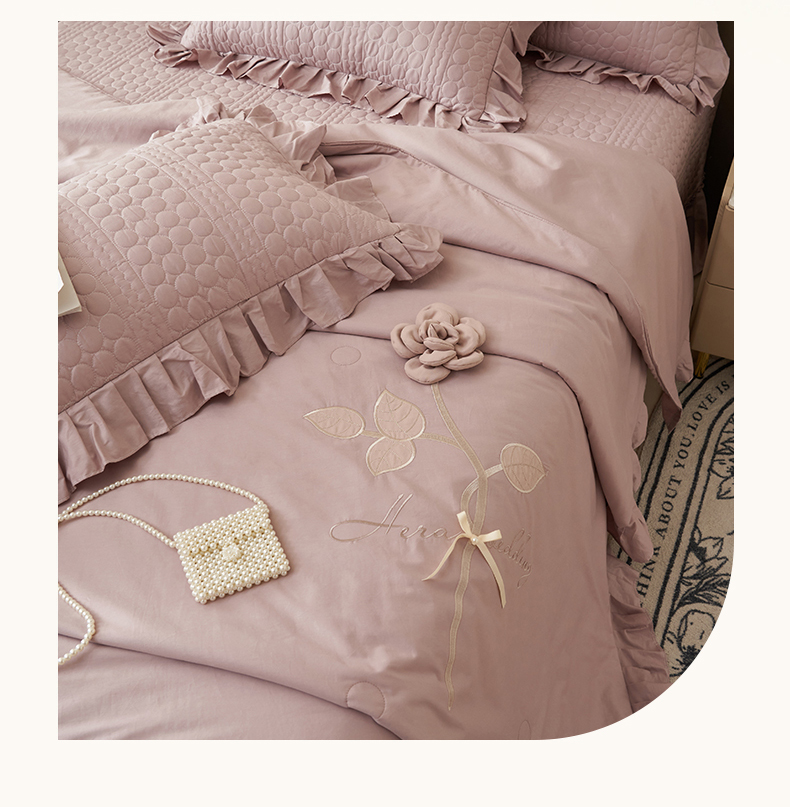 商品名称:恒爱 2025新款A类全棉纯棉多功能夏被夏凉被空调被四件套-一枝独秀 豆沙紫