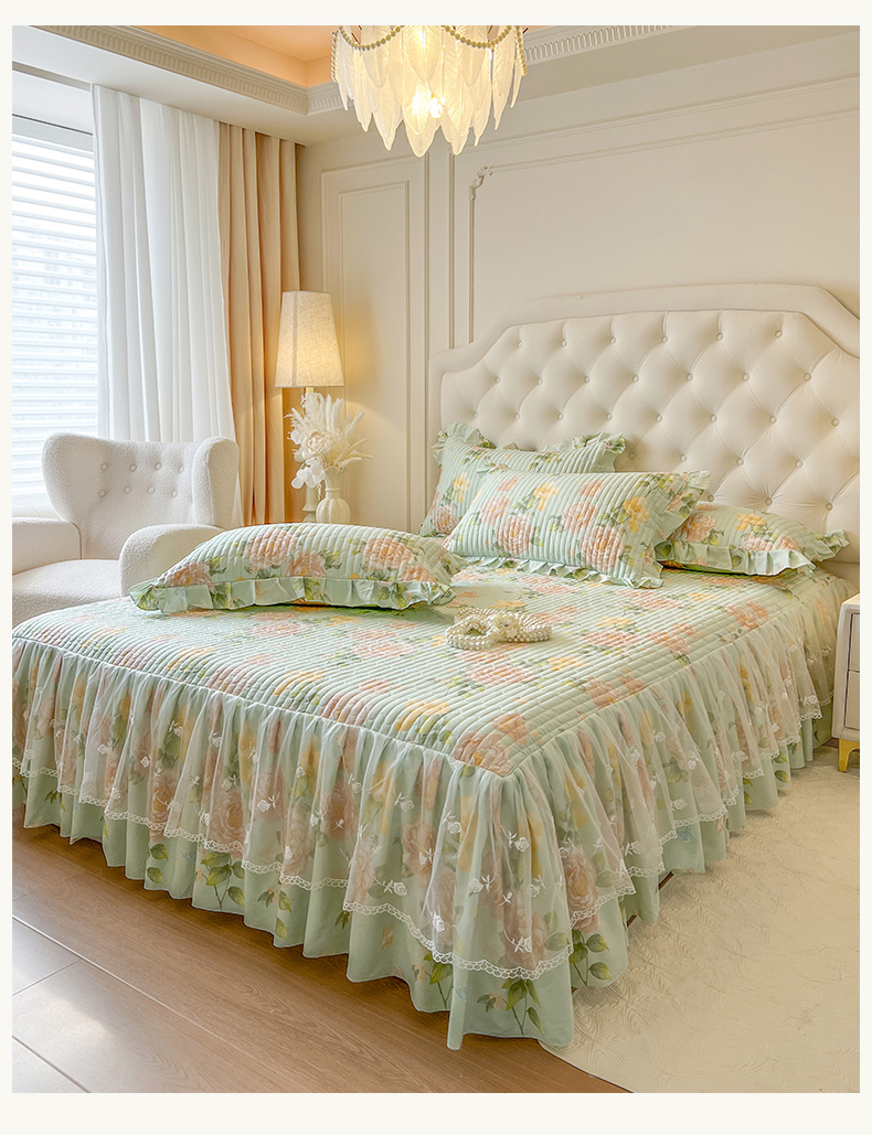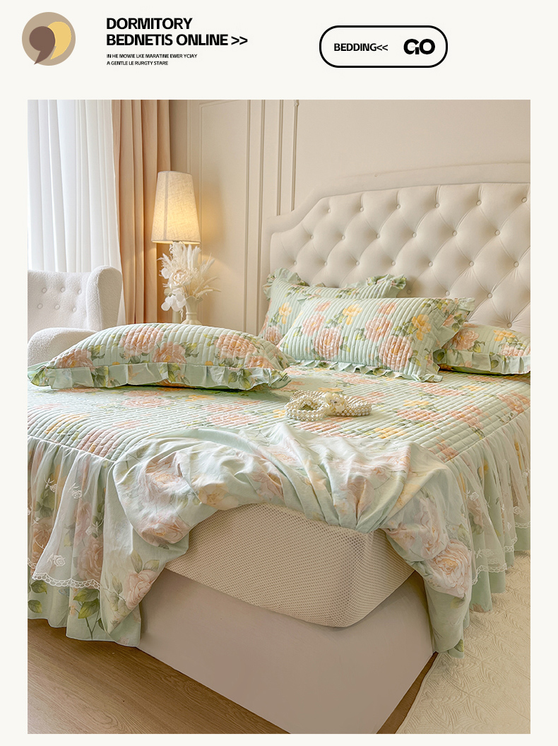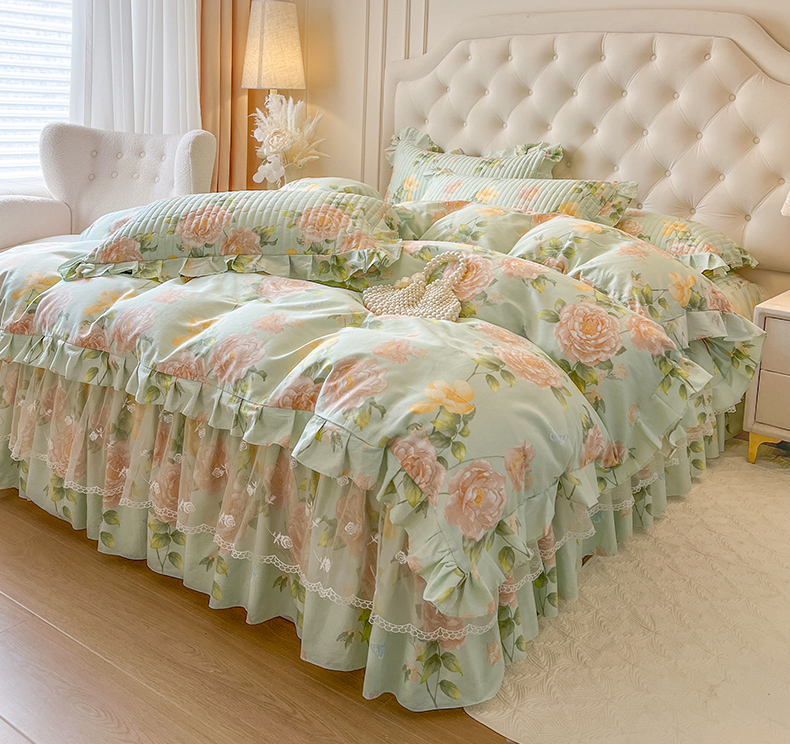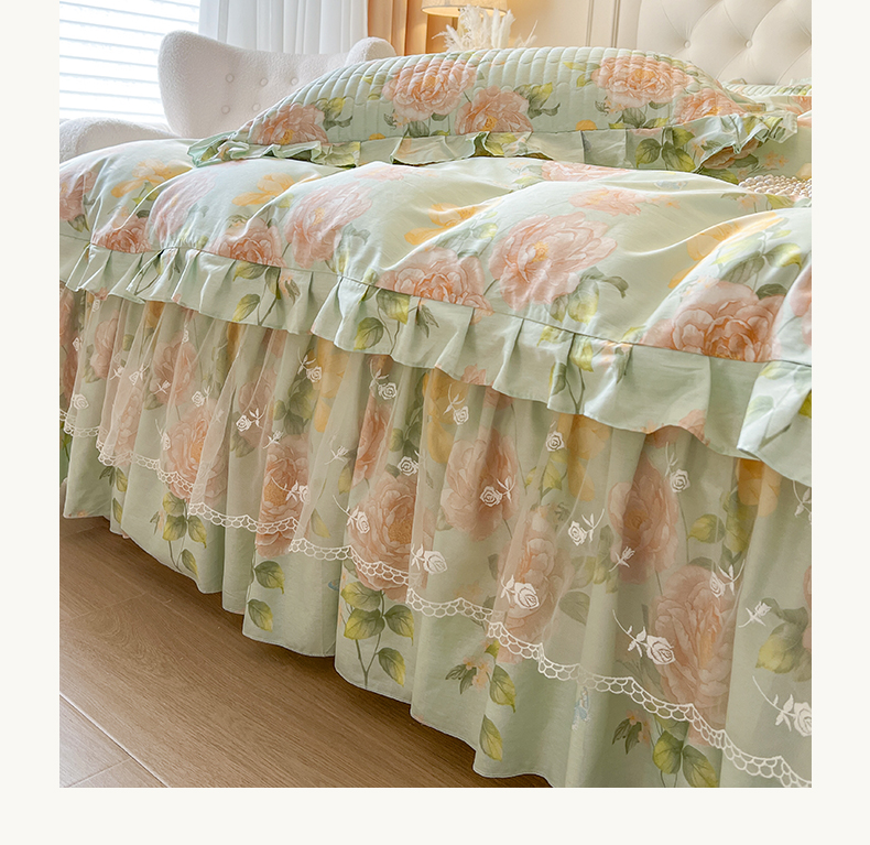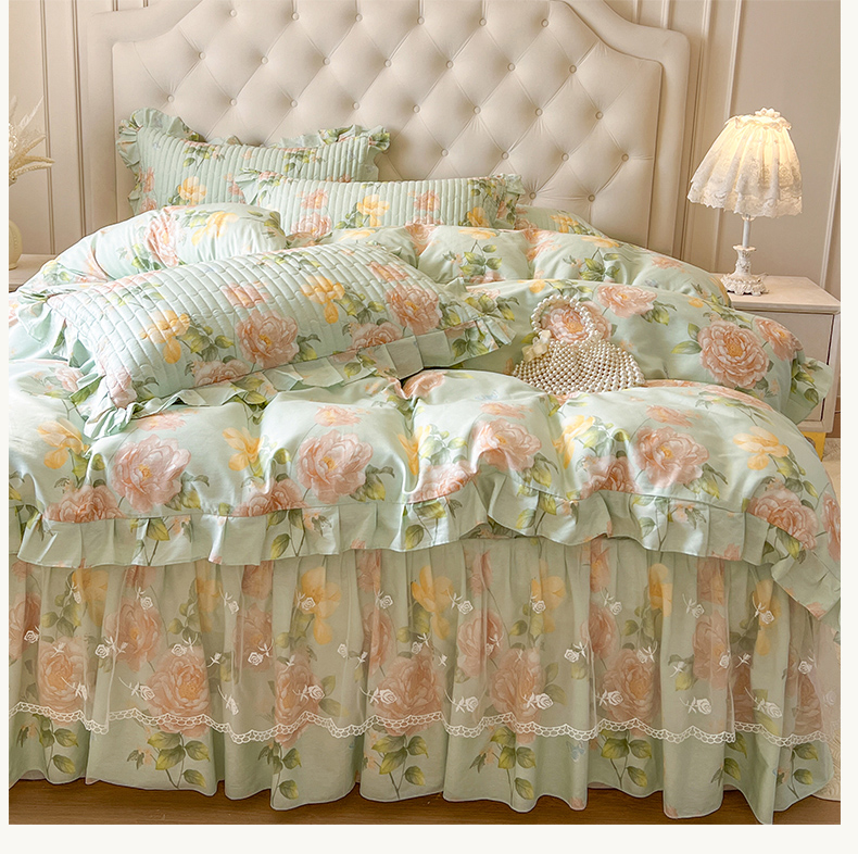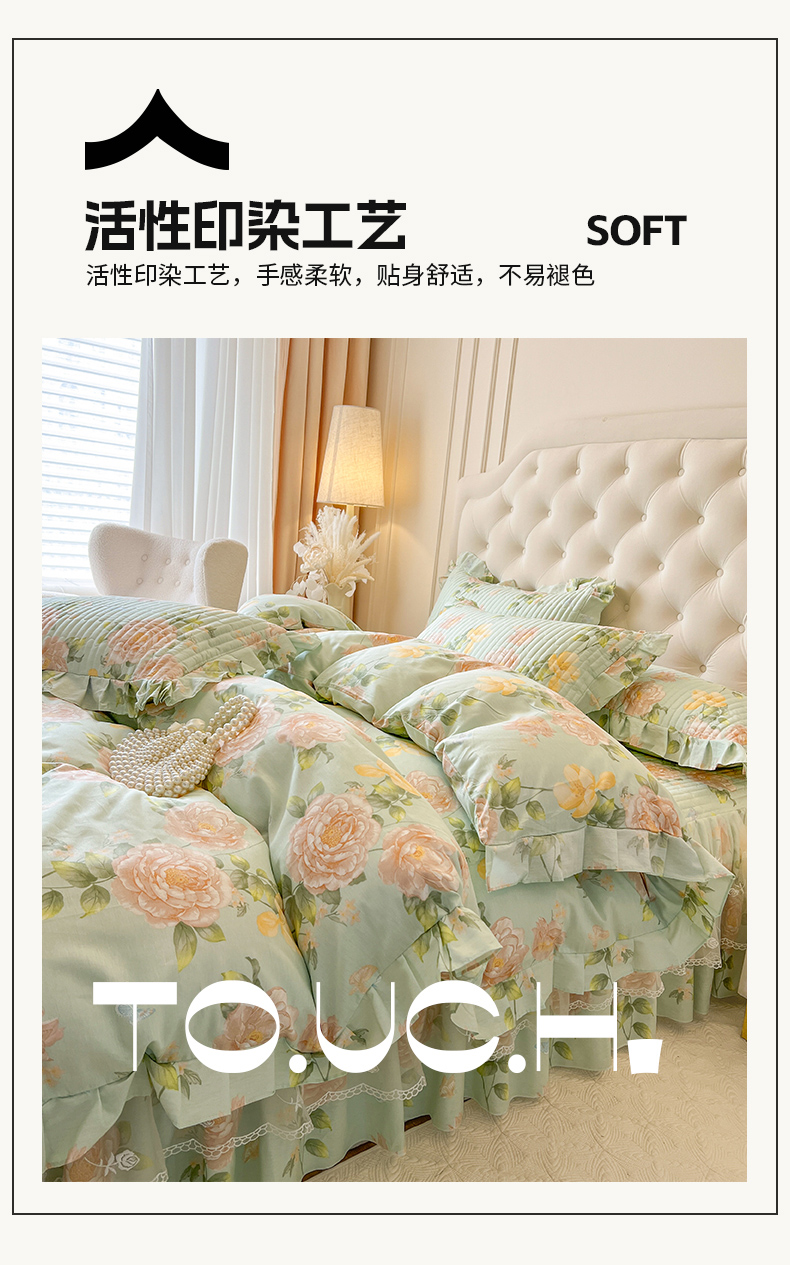 当前位置: 91家纺网 > 商品网购 > 床品套件 > 四件套 > 全棉普通四件套 > 恋尚 2025新款全棉纯棉蕾丝印花床笠裙四件套 花蝶语