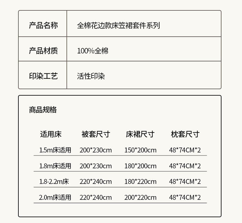 180x220cm床笠裙款标准四件套 | ¥220.00 |