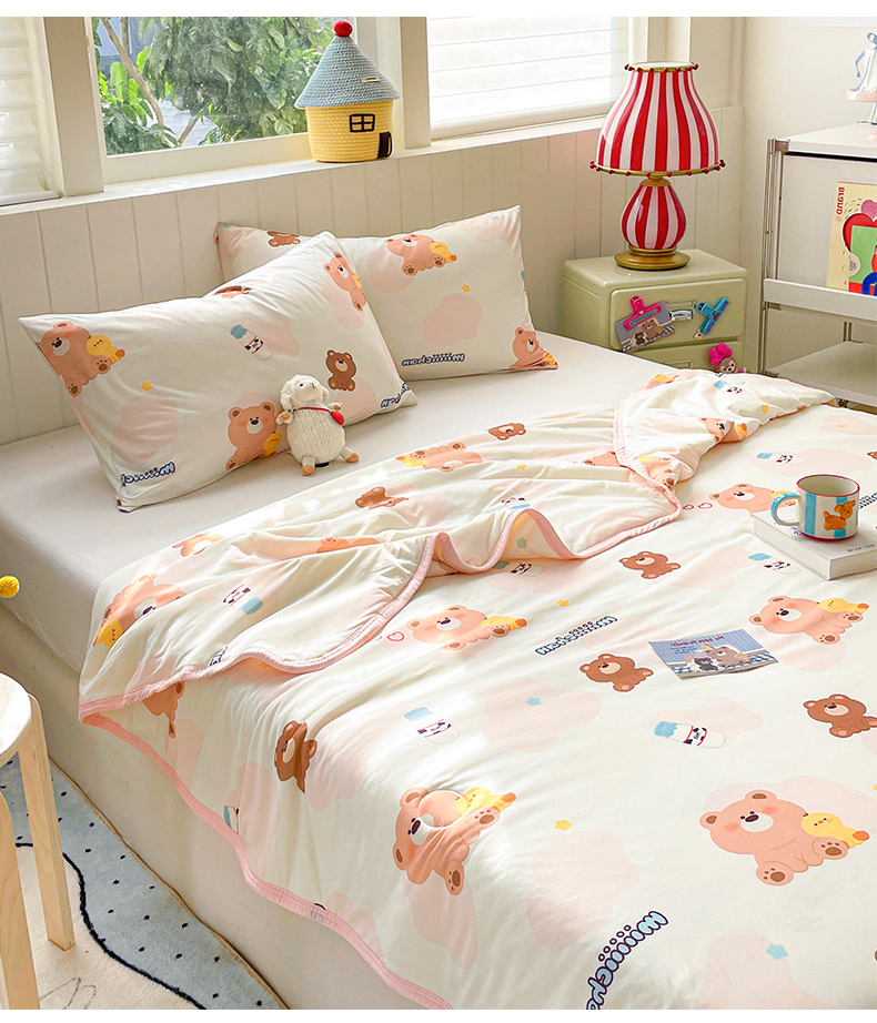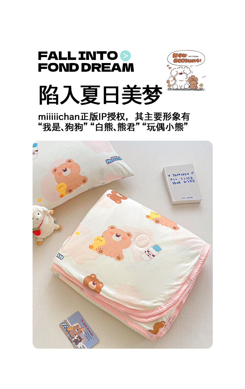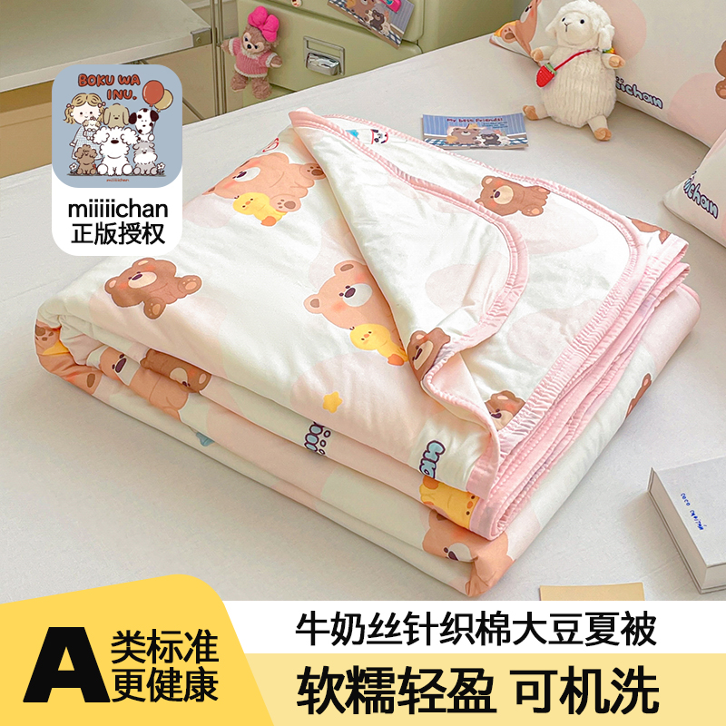 • 91家纺网 家纺一手货源 找家纺 金爱家2025新款A类高品质正版授权miiiiichan可爱卡通狗狗白熊女孩牛奶丝针织棉夏被 针织棉miiiiichan-牛奶棕熊
