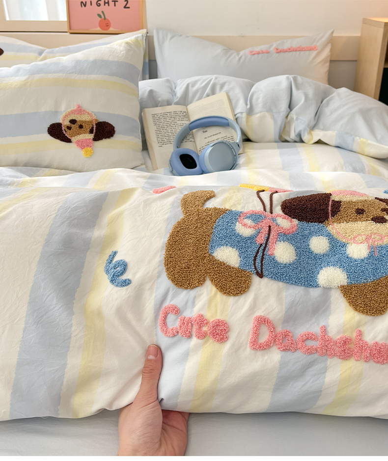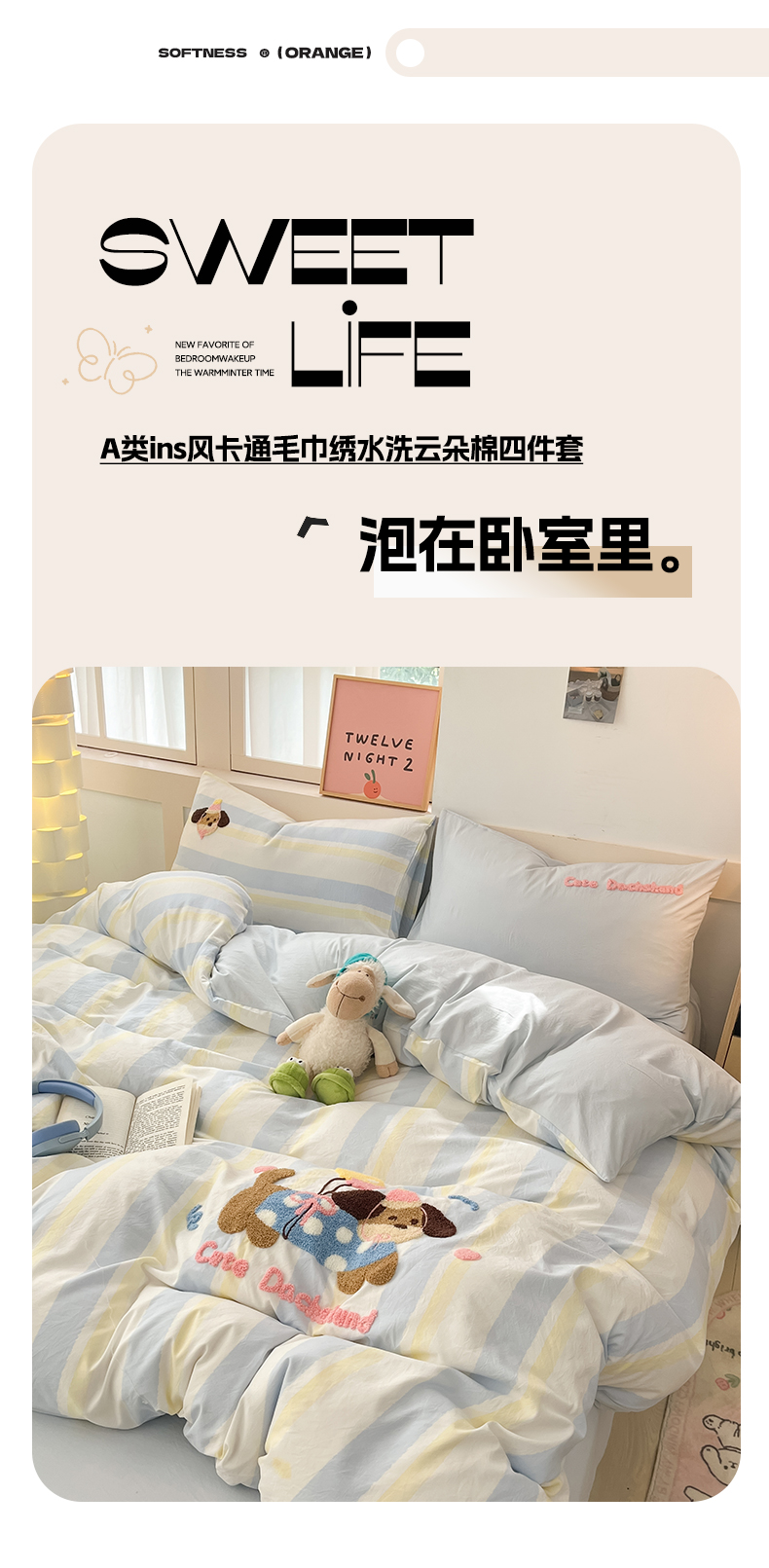 如一 2025新款A类ins风卡通毛巾绣水洗棉四件套 可爱狗