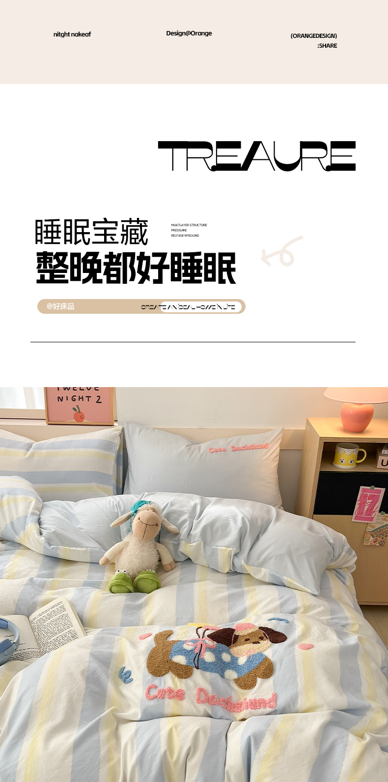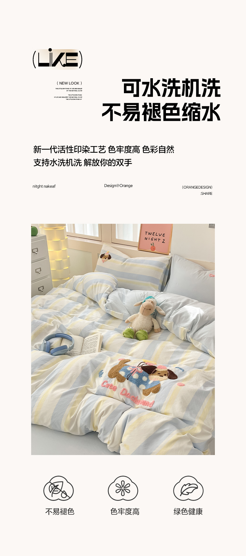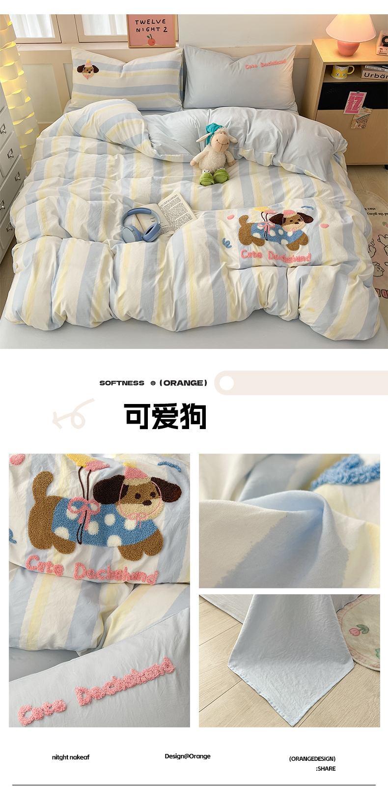 商品名称:如一 2025新款A类ins风卡通毛巾绣水洗棉四件套 可爱狗