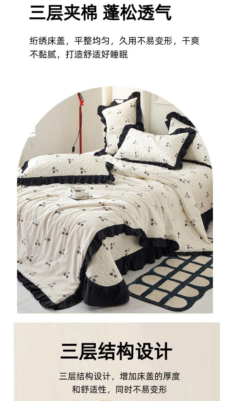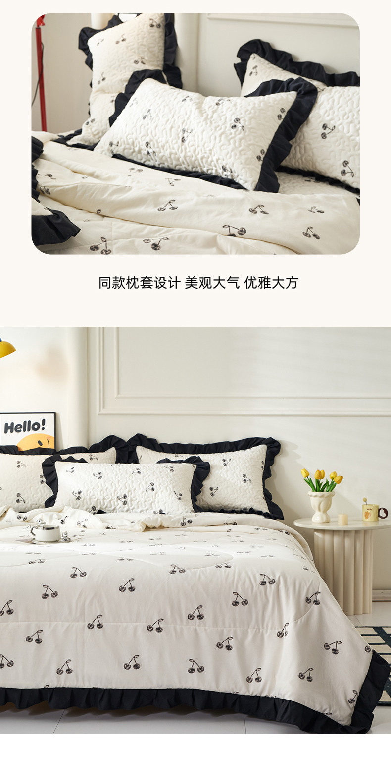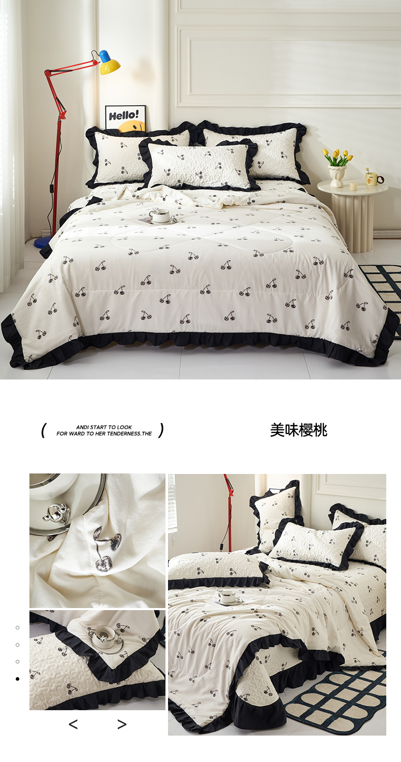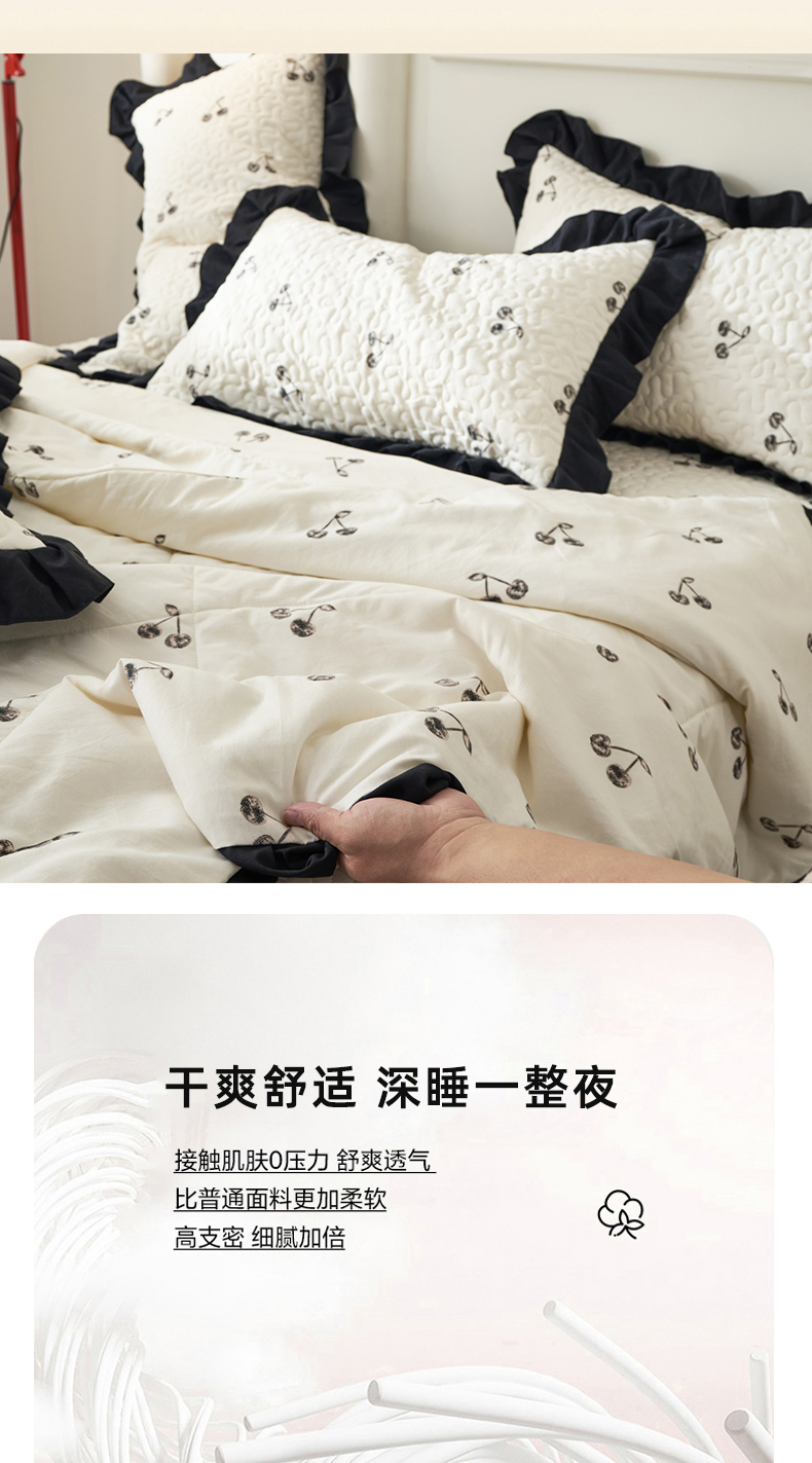 商品名称:蝶帕家纺 2025新款法式赫本风韩版花边床盖款夏被四件套 美味樱桃