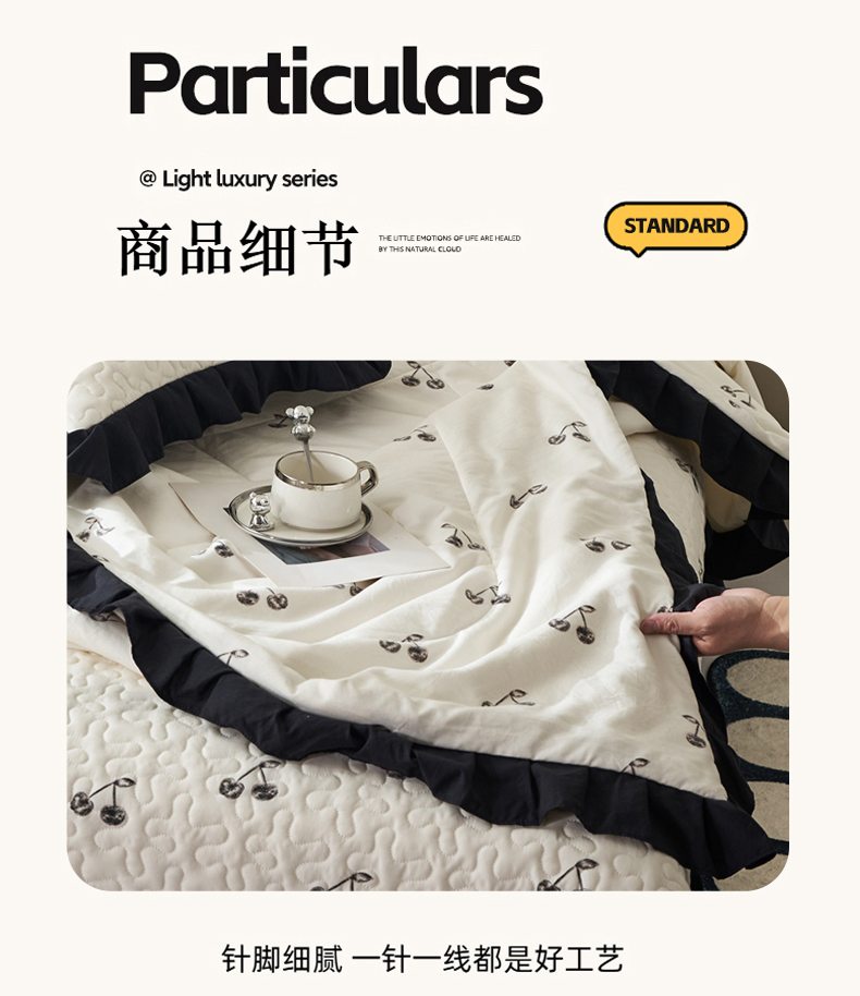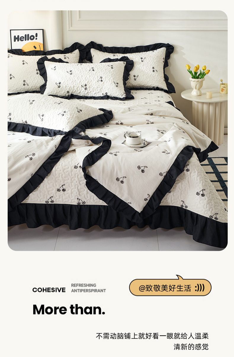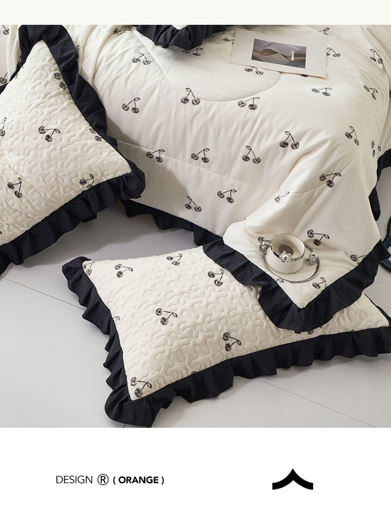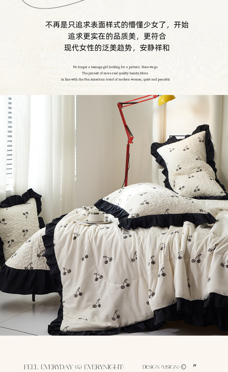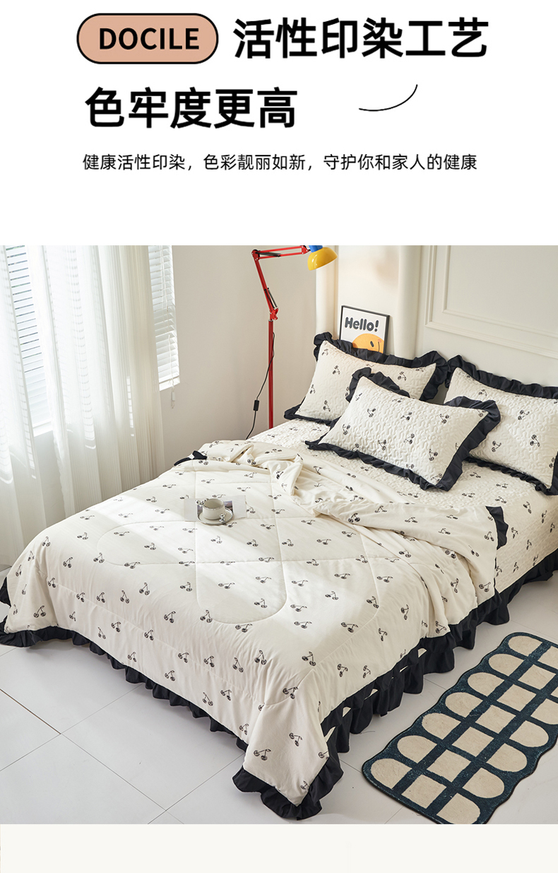商品名称:蝶帕家纺 2025新款法式赫本风韩版花边床盖款夏被四件套 美味樱桃