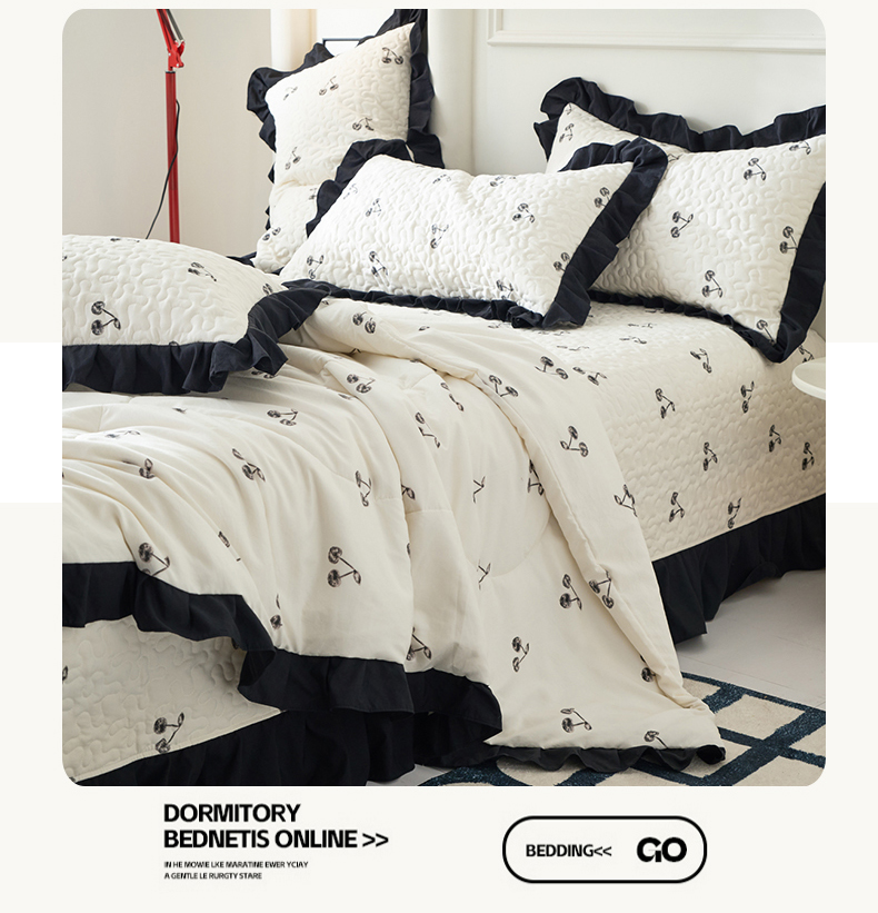 蝶帕家纺 2025新款法式赫本风韩版花边床盖款夏被四件套 美味樱桃