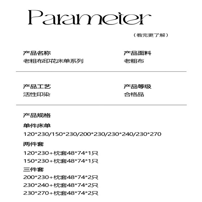 230x240cm单床单+2只枕套 | ¥34.00 |