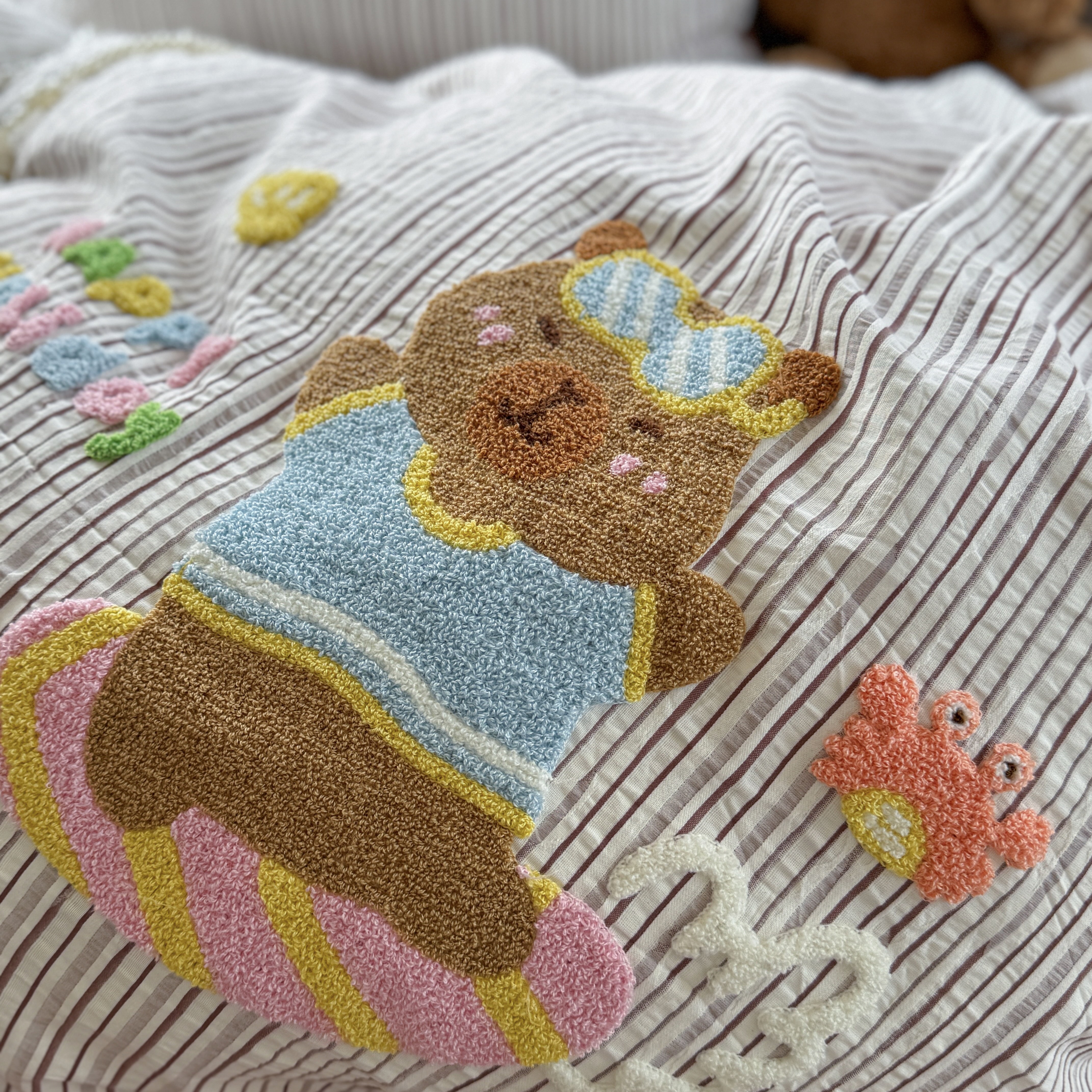 商品名称:柚子 2025春夏新款全棉纯棉提花毛巾绣四件套 卡皮冲浪