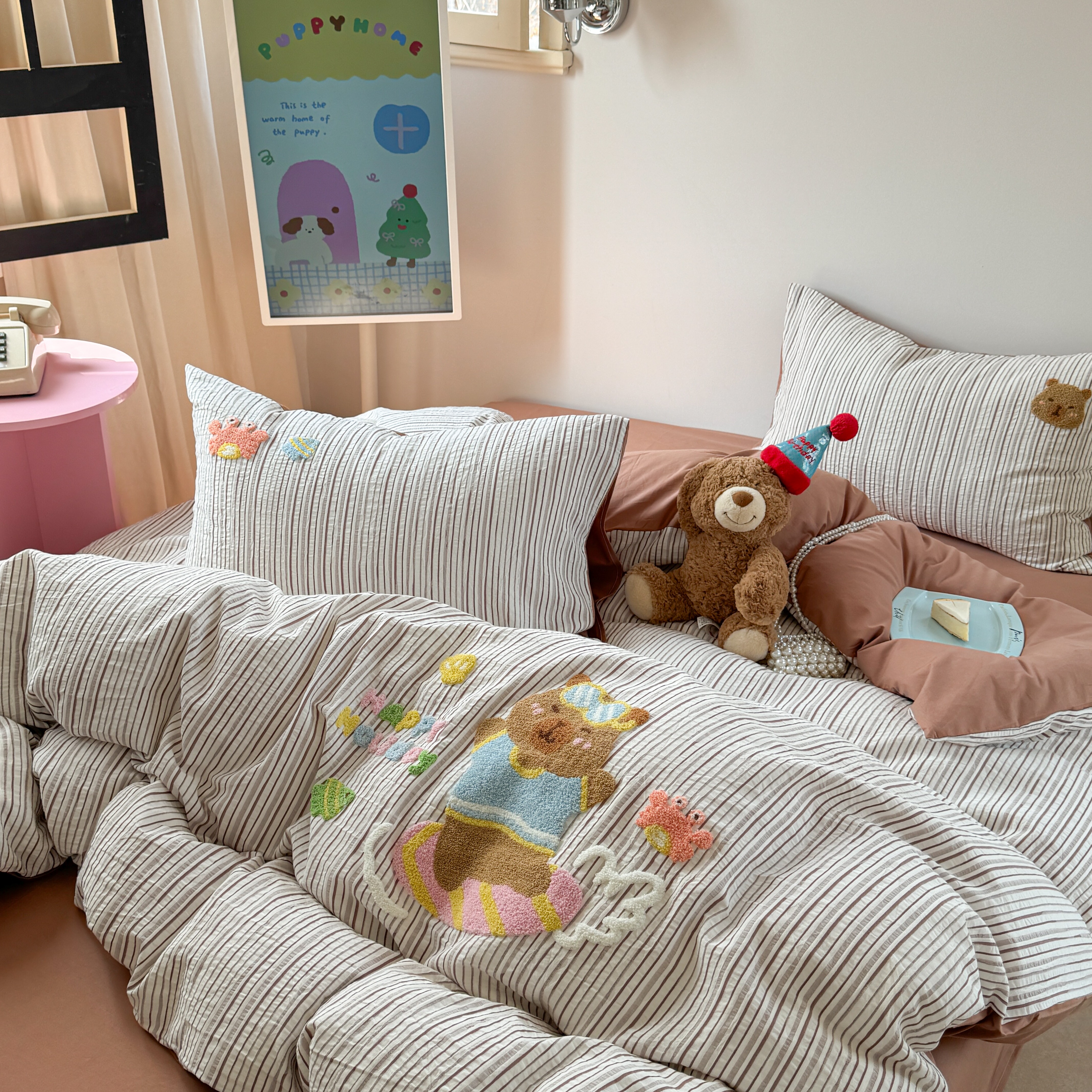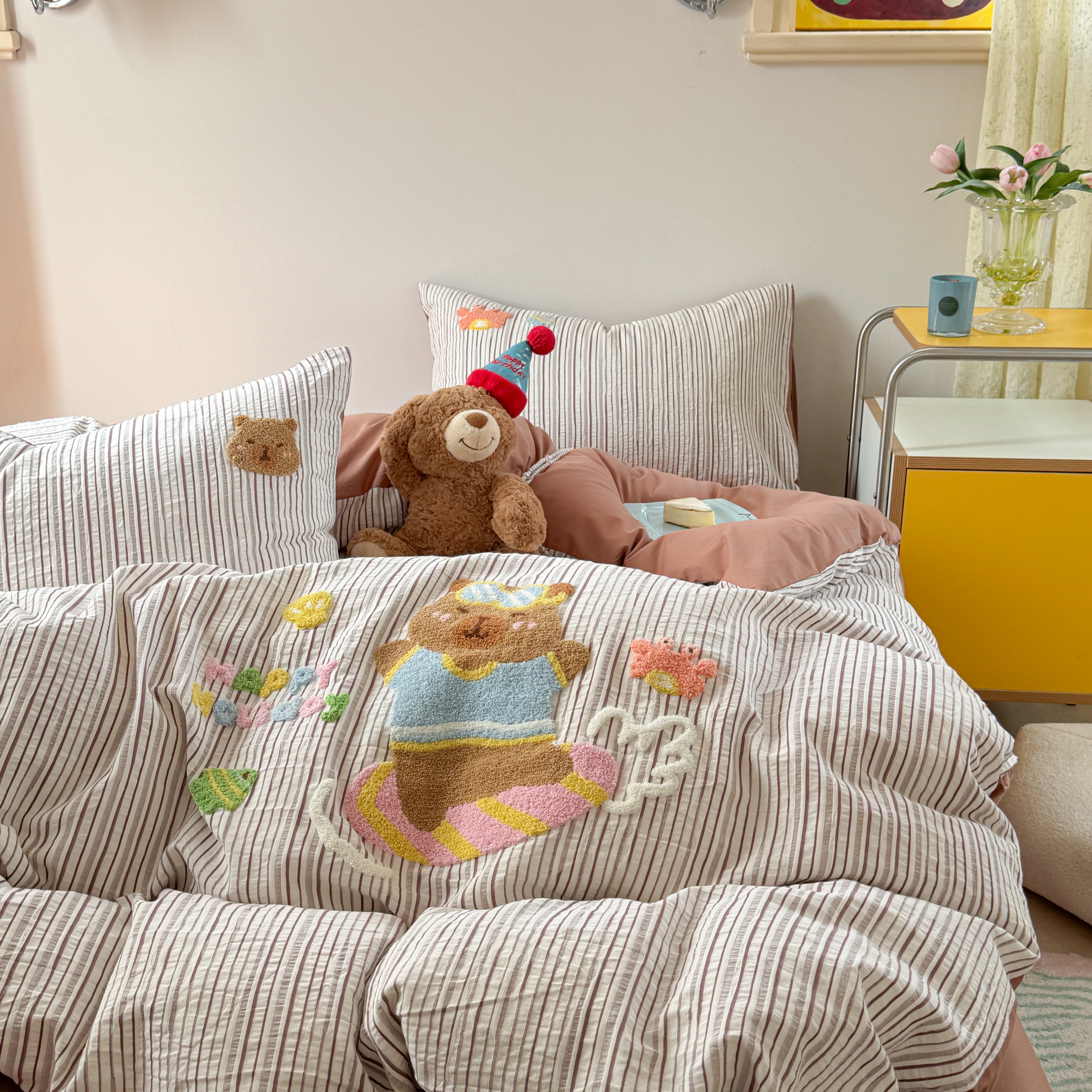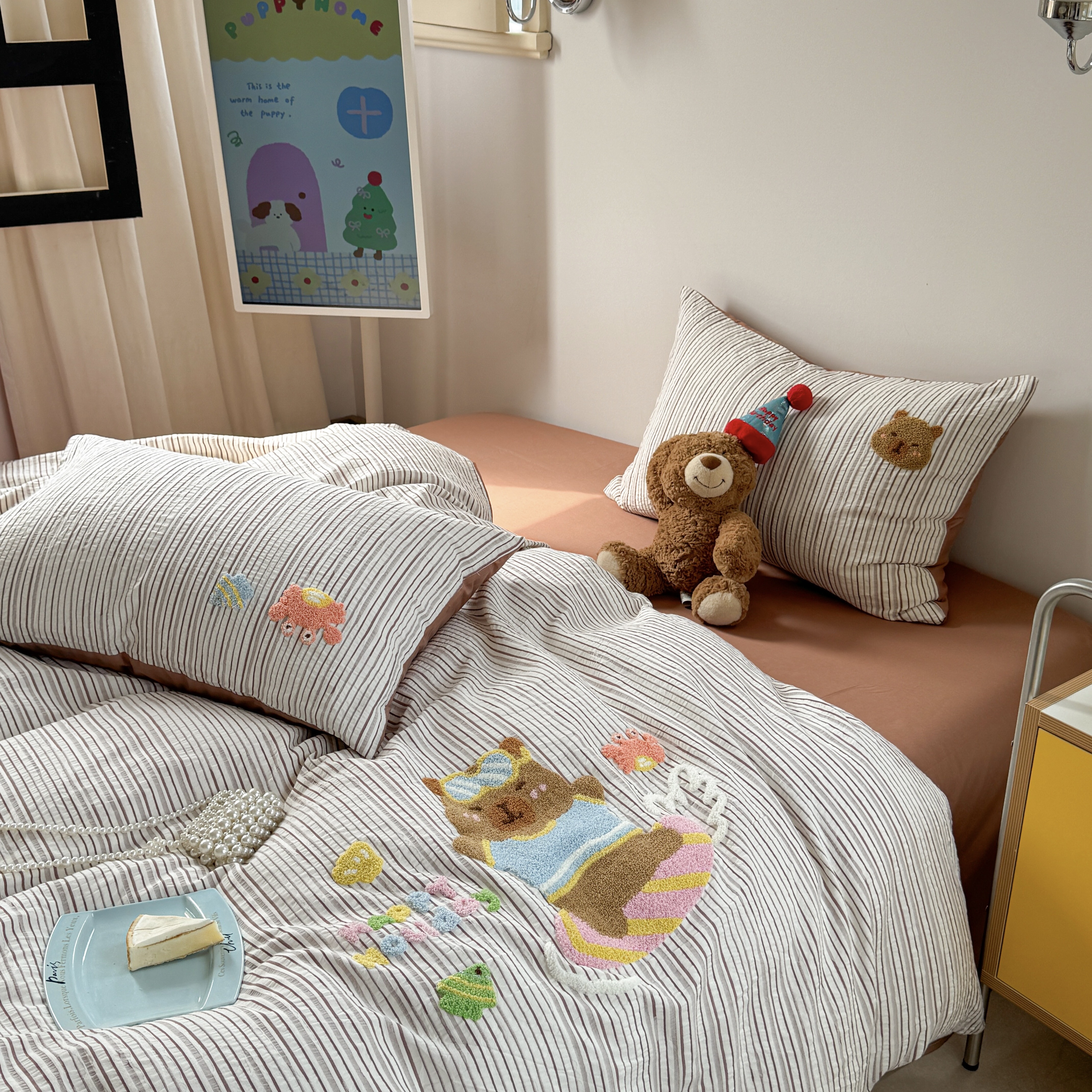 (总)柚子YOUTH 2025新款全棉双层纱贴布绣四件套,棒球熊猫,贝雷帽,冰淇淋小熊,格子玩偶,碎花小兔,小黑猫