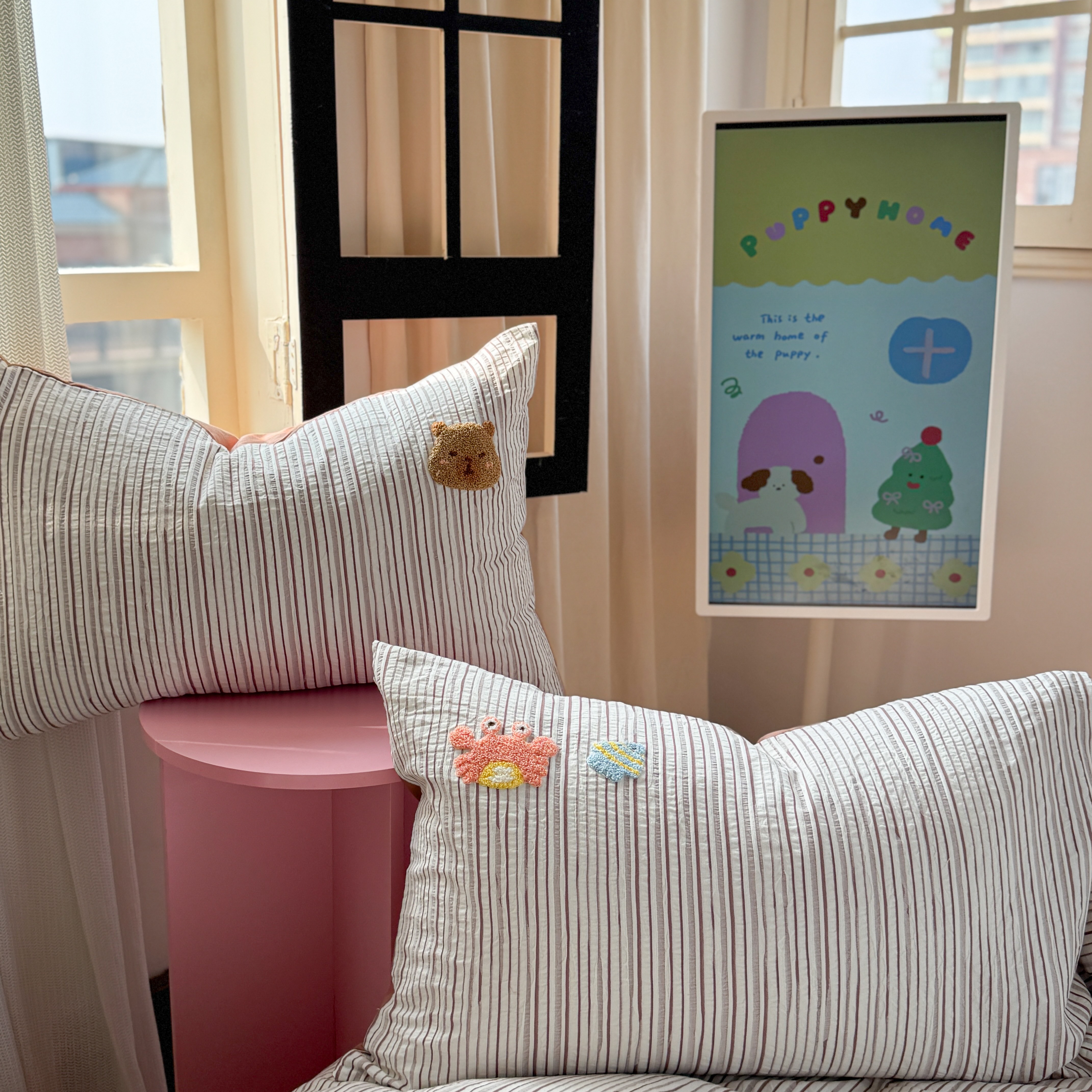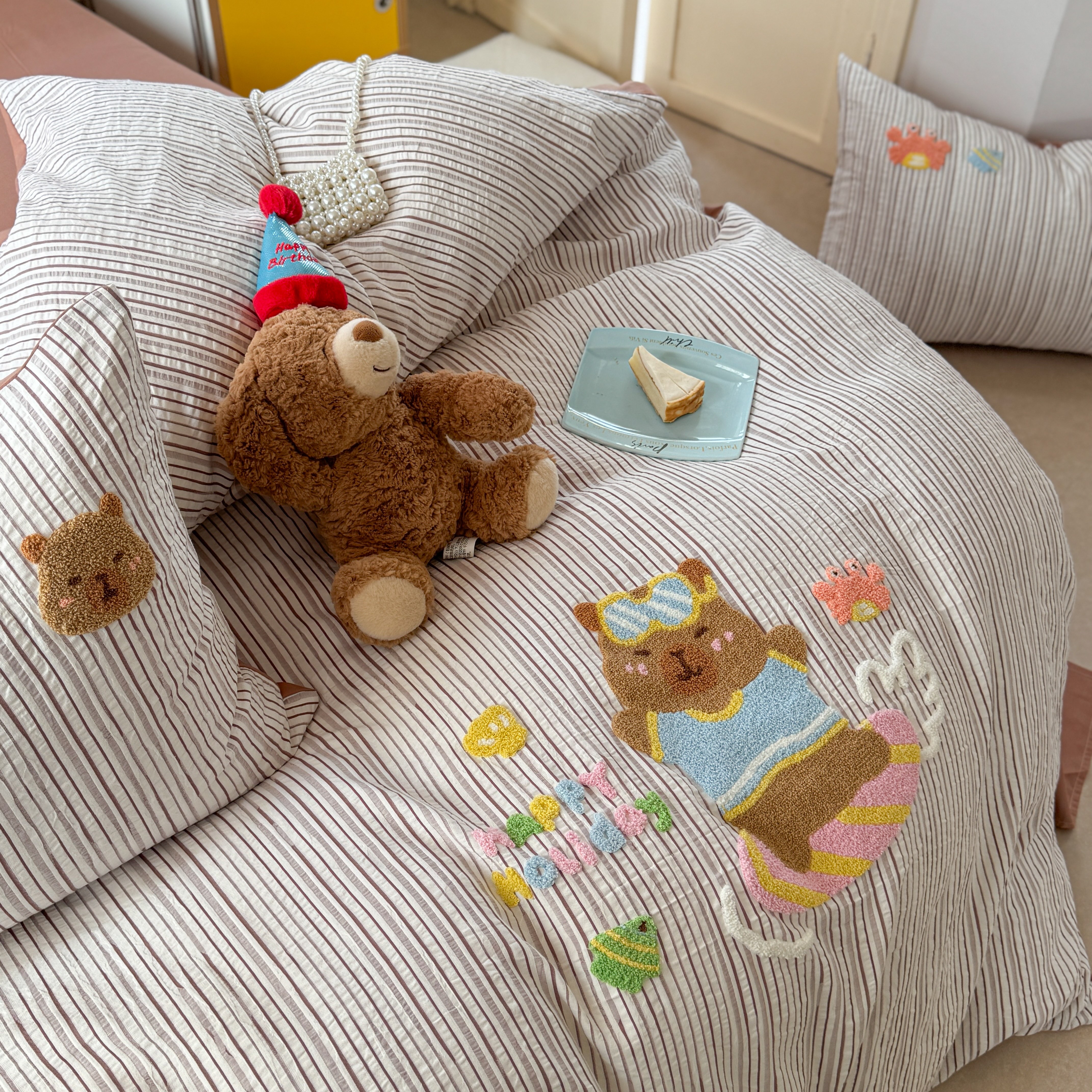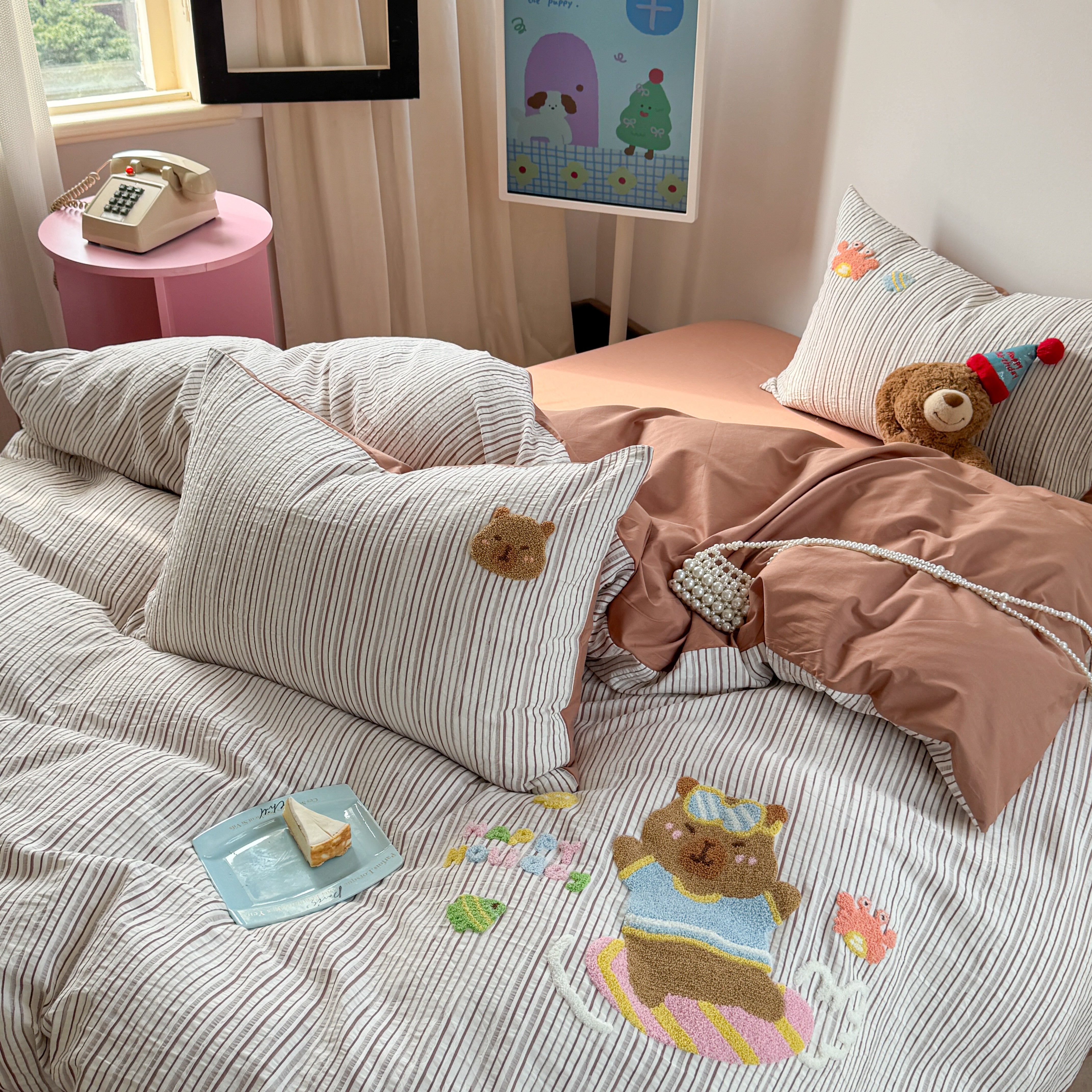 (总)柚子YOUTH 2025新款全棉双层纱贴布绣四件套,棒球熊猫,贝雷帽,冰淇淋小熊,格子玩偶,碎花小兔,小黑猫