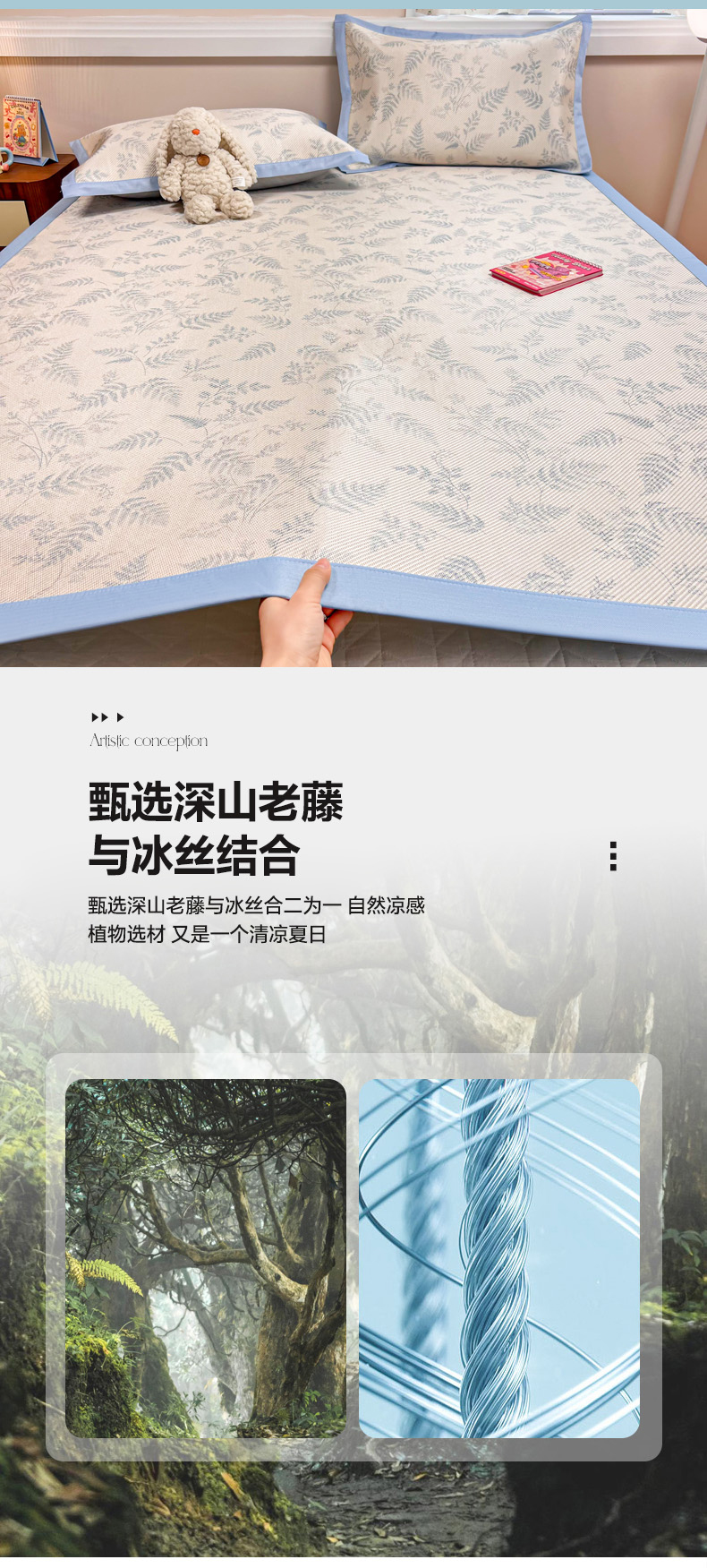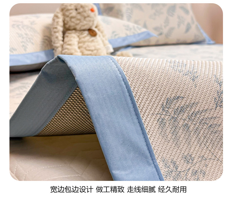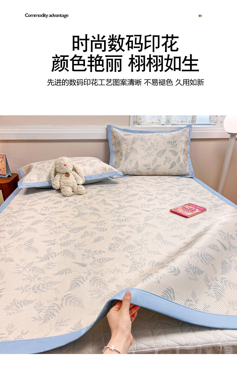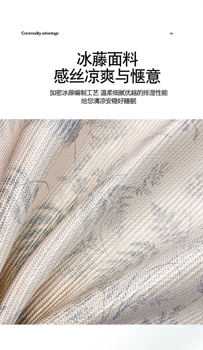 商品名称:慕尚家纺 2025新款数码印花床席床笠款冰藤席 床笠款-土豆叶