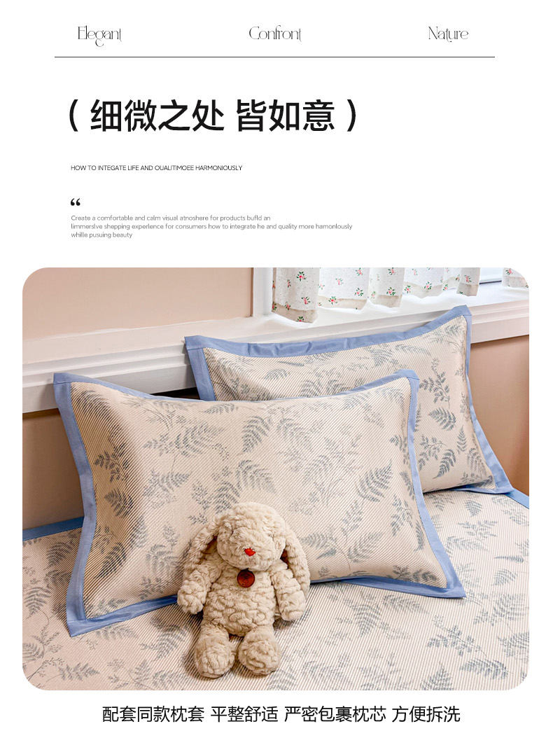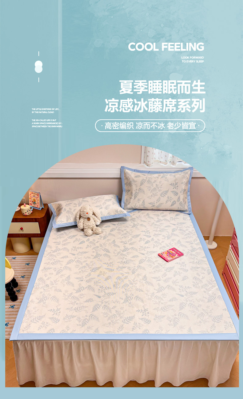 慕尚家纺 2025新款数码印花床席床笠款冰藤席 床笠款-土豆叶
