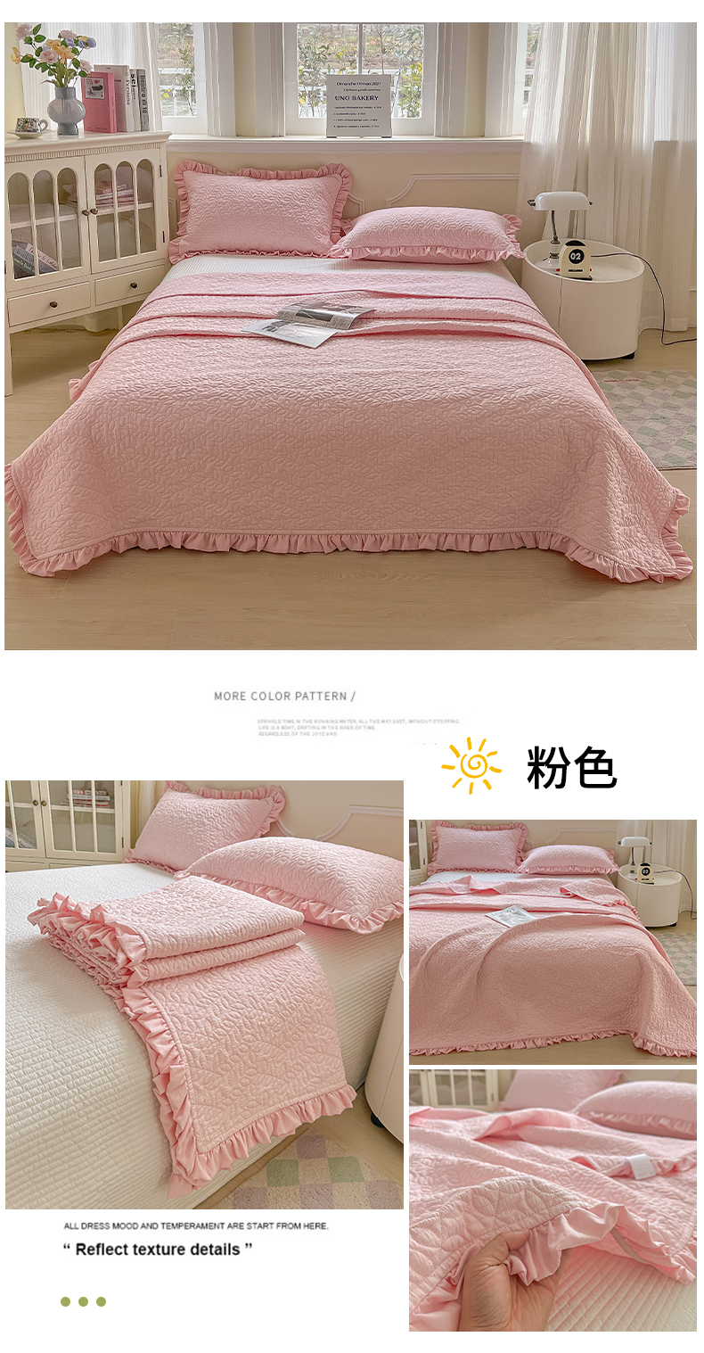 (总)乐卧家居 2026新款韩国INS风简约时尚绗缝荷叶边夏被,白色,粉色,黄色,灰色,蓝色,绿色,紫色,深紫