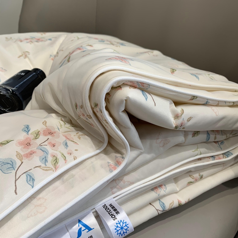 商品名称:奈萝家纺 2025新款A类凉感丝小凉皮夏被可机洗夏被新品空调被 桃花朵朵