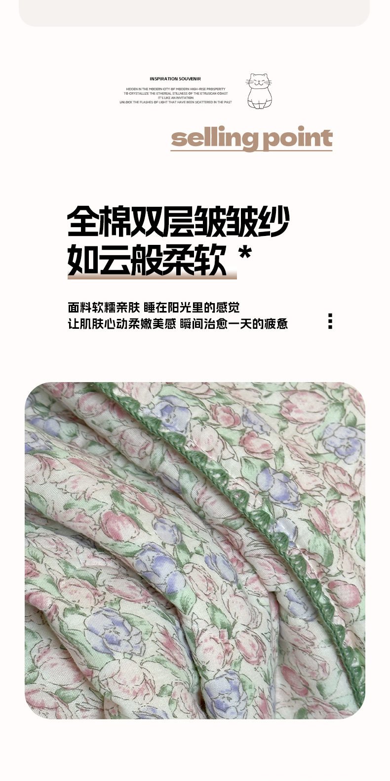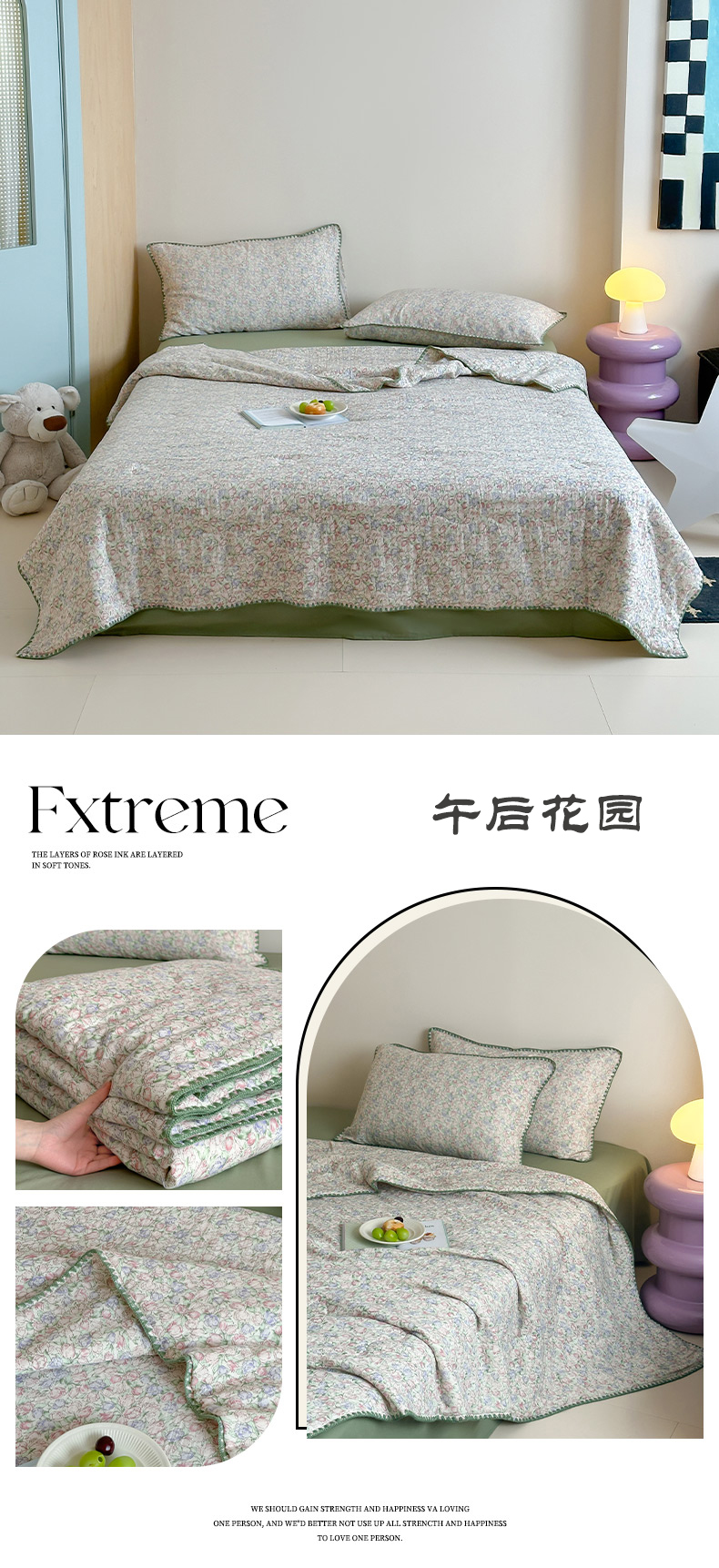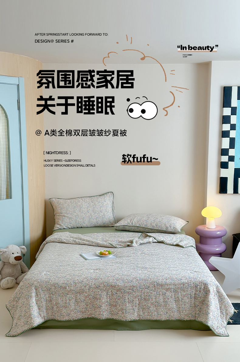 • 91家纺网 家纺一手货源 找家纺 三朵家纺 2025春夏新款全棉纯棉双层绉绉纱三角针夏被夏凉被空调被 午后花园