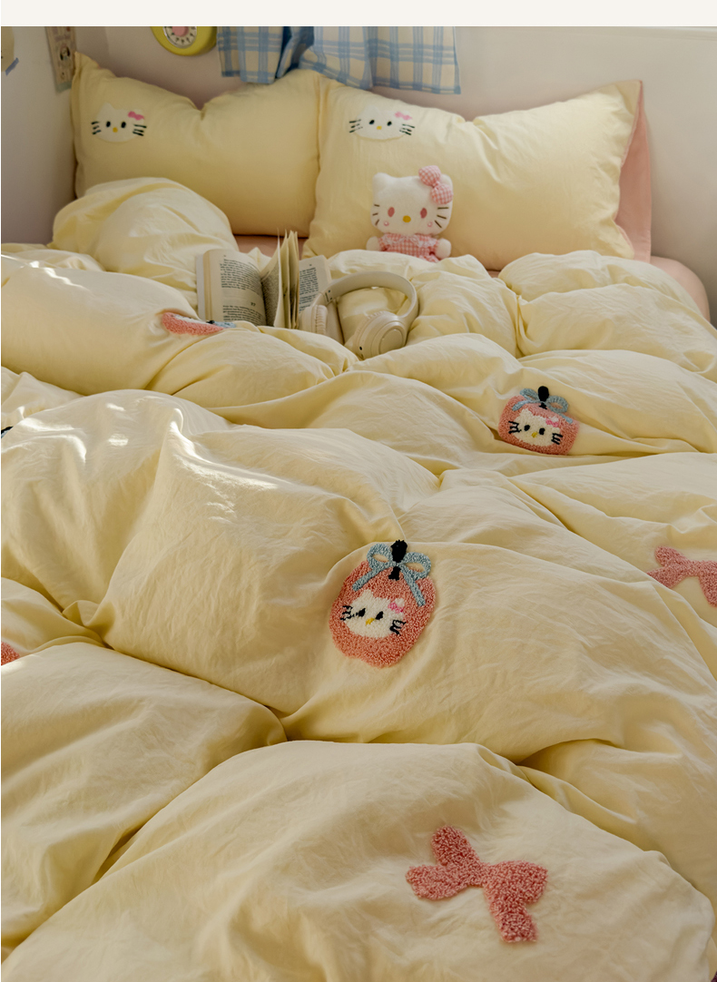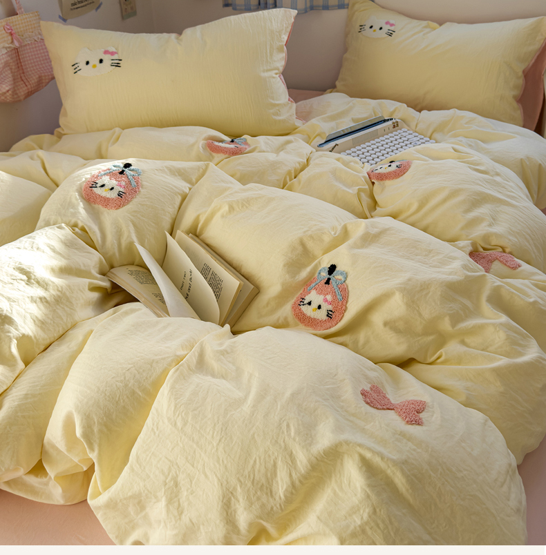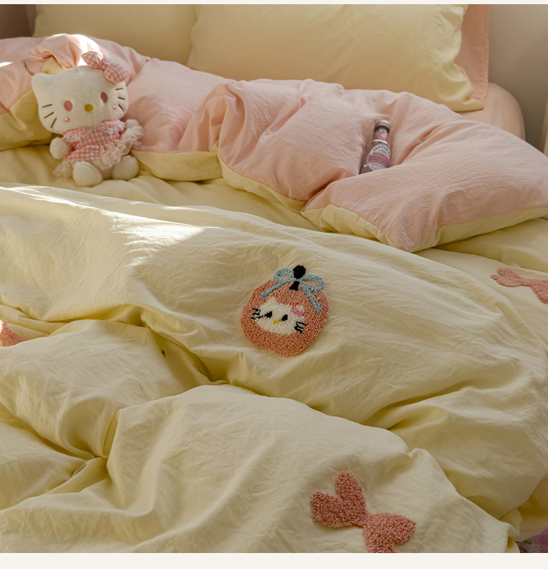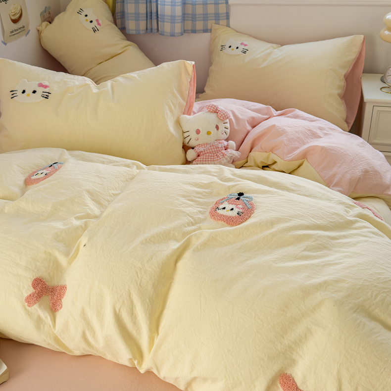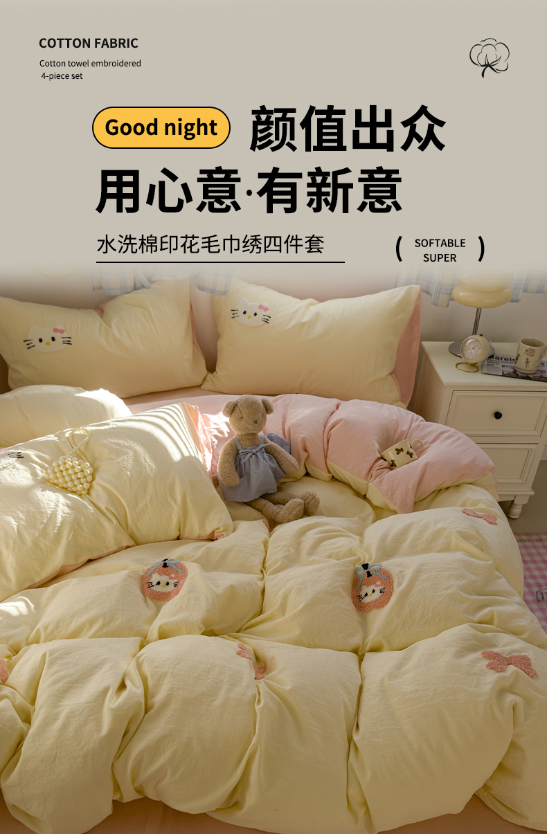 当前位置: 91家纺网 > 商品网购 > 床品套件 > 四件套 > 磨毛活性四件套 > 优兰朵 2025新款学生卡通水洗棉毛巾绣三件套床品四件套系列(提供买家秀) 苹果猫咪-粉玉