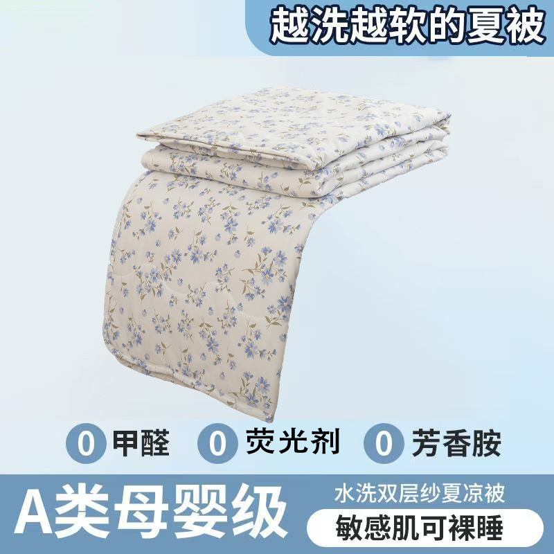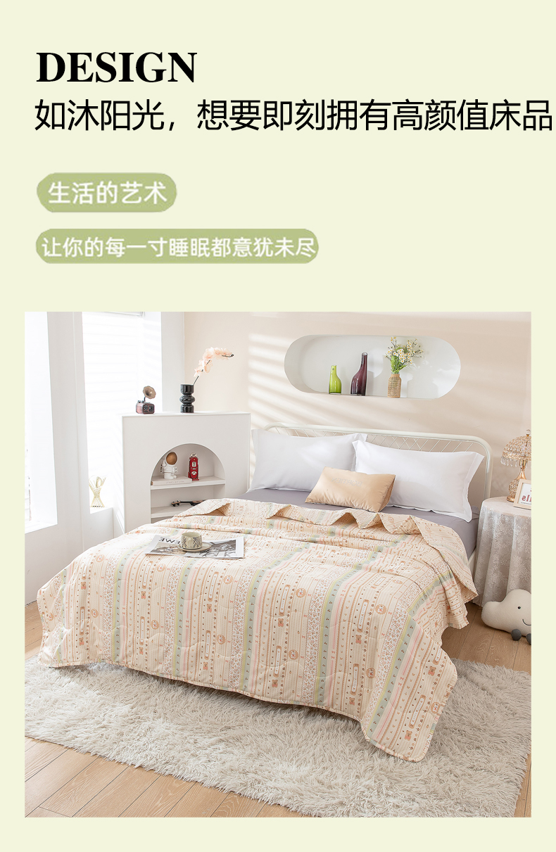 商品名称:乐居家纺 2025新款水洗棉夏被波浪款包边夏凉被被子被芯 黄小格