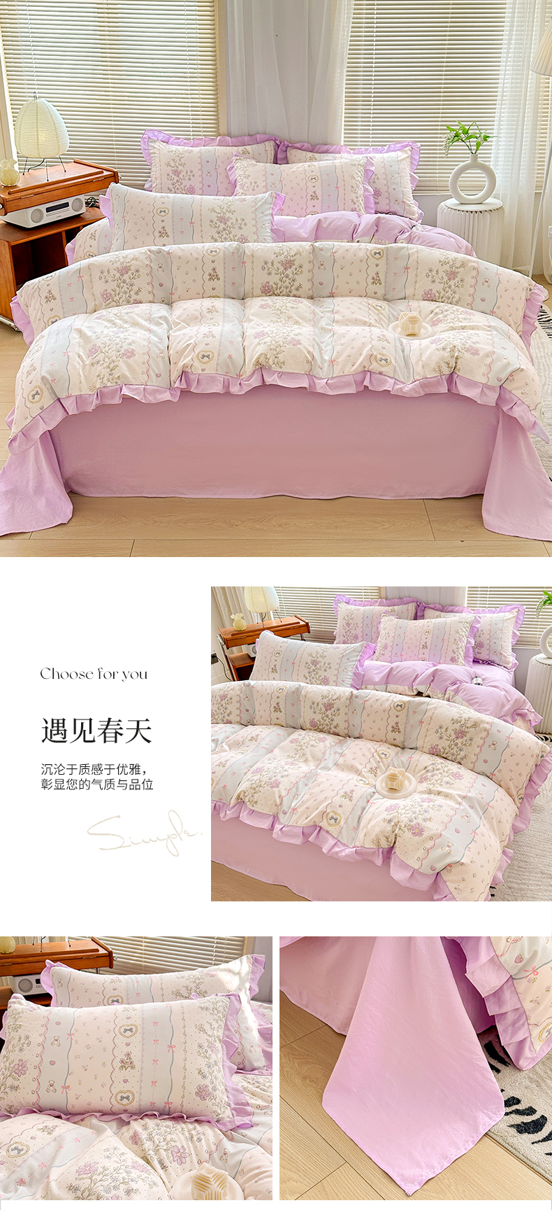 佳一家纺 2025新款亲肤水洗棉四件套系列 遇见春天