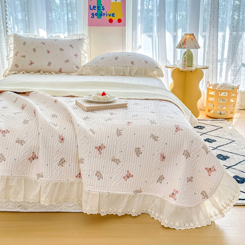 岚吉家纺 2025新款莫代尔印花床盖 玩偶熊