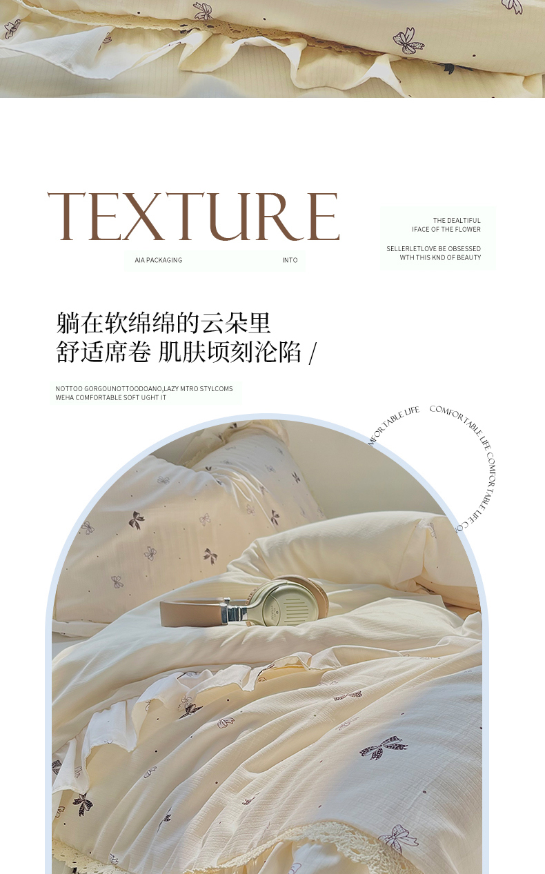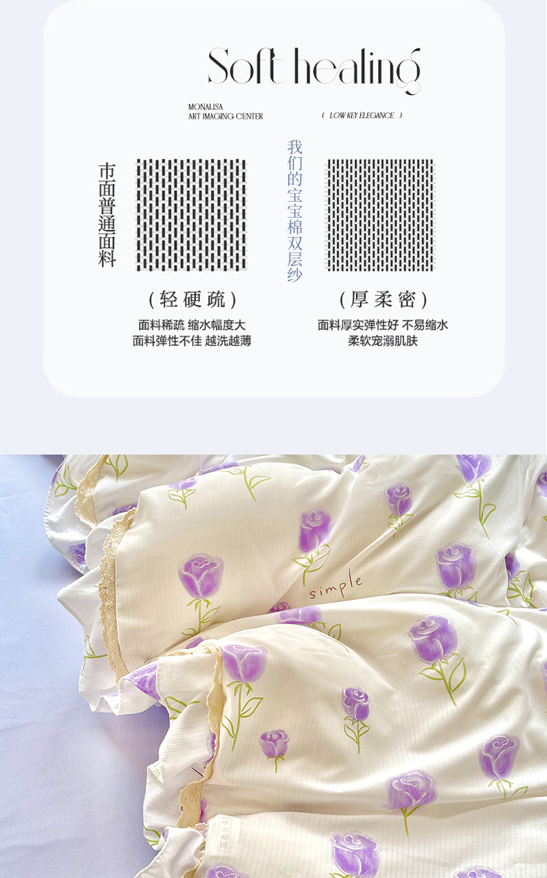 商品名称:(总)南北家居 2025新款A类宝宝棉双层纱系列四件套-花边款