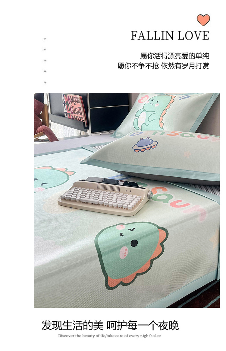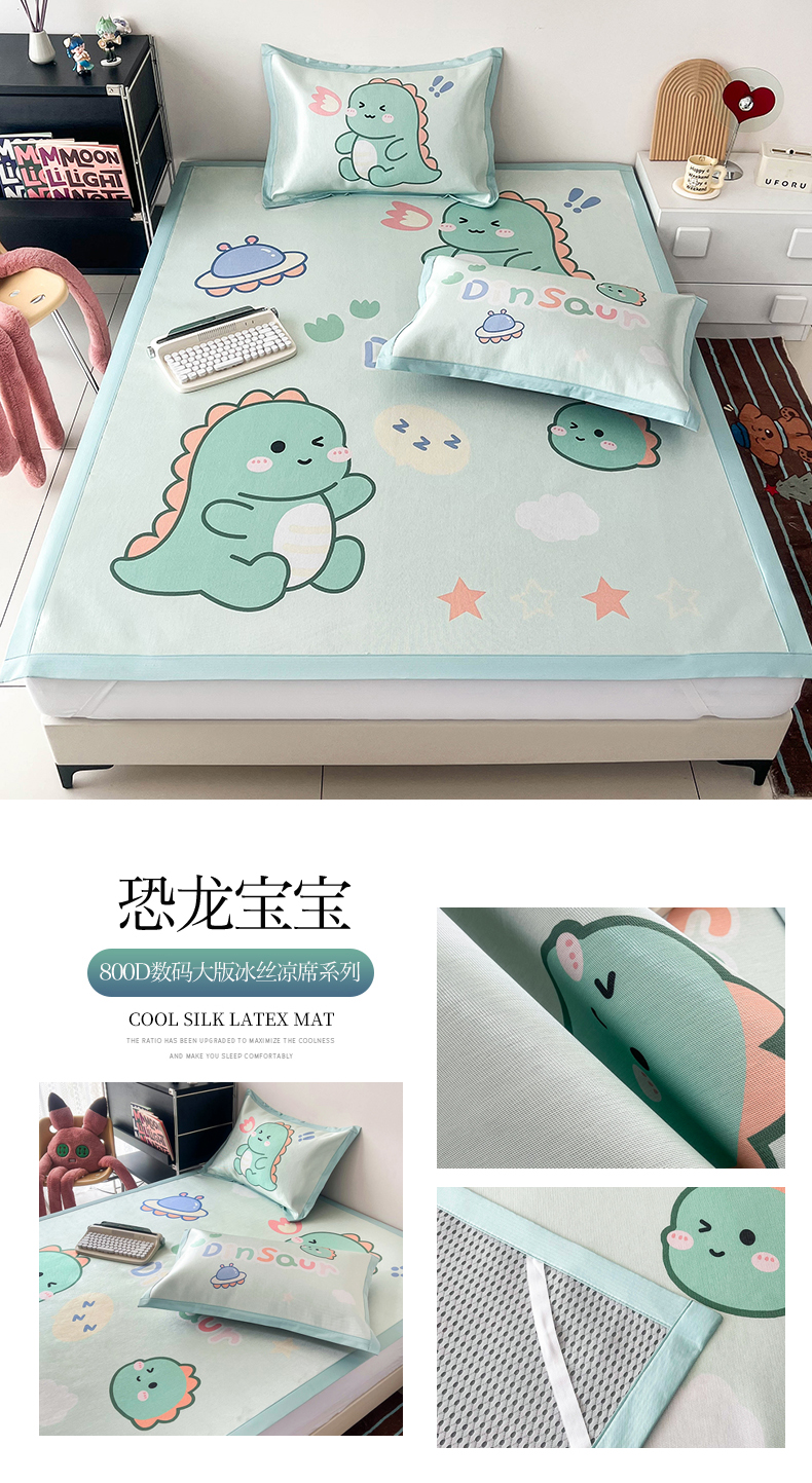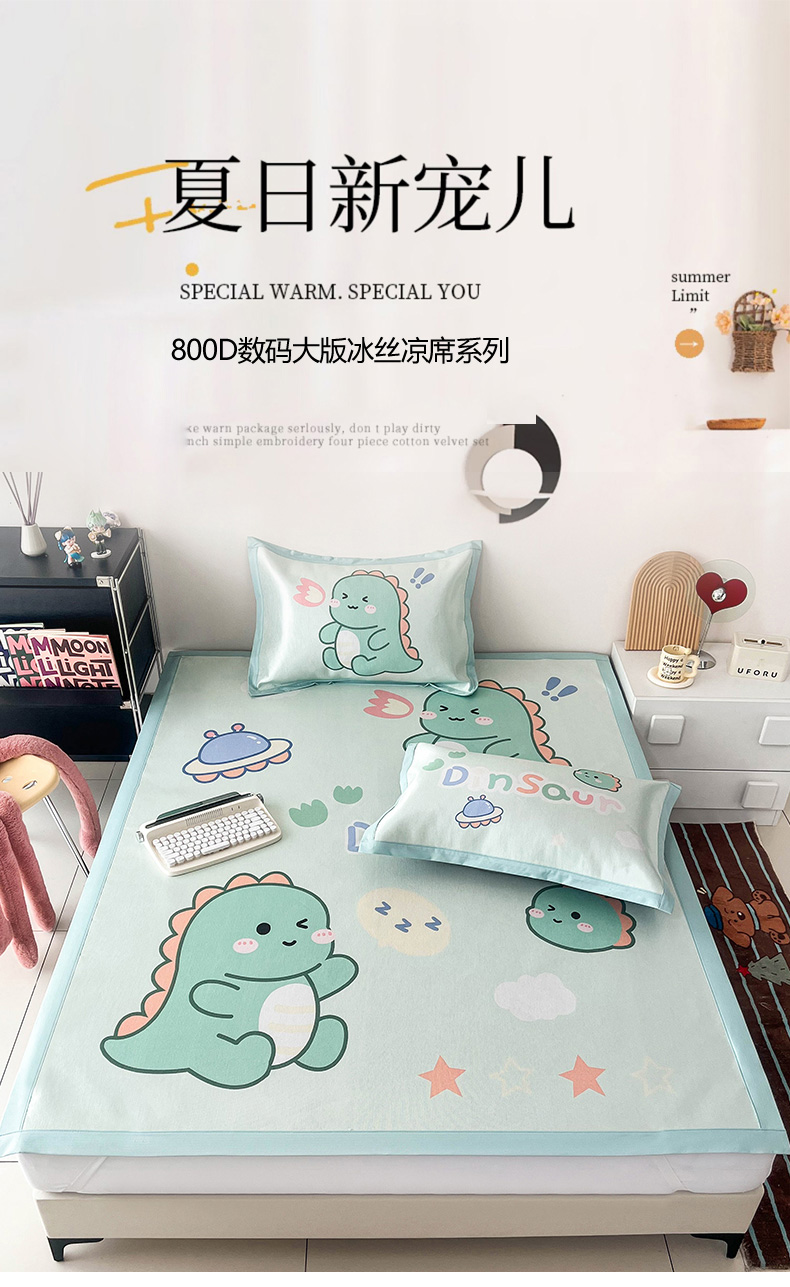 商品名称:倾慕家纺 800D数码大版冰丝凉席 恐龙宝宝
