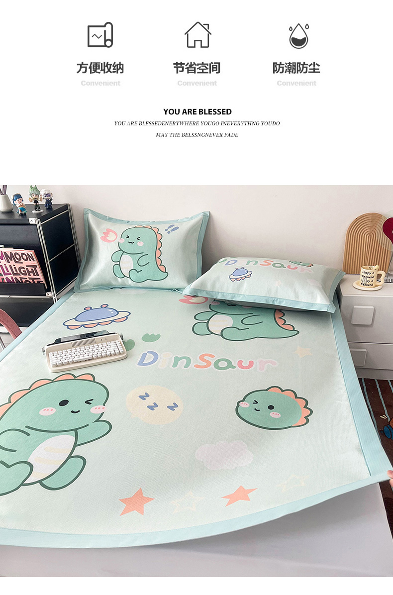 倾慕家纺 800D数码大版冰丝凉席 恐龙宝宝