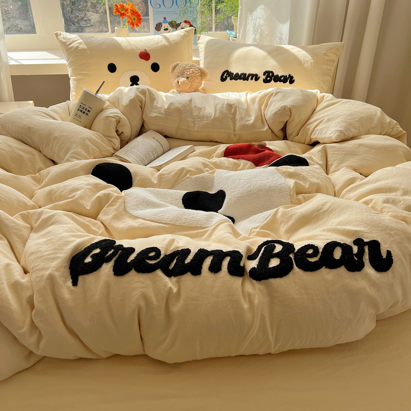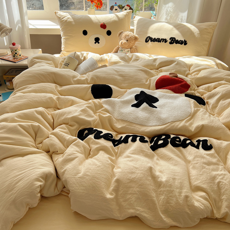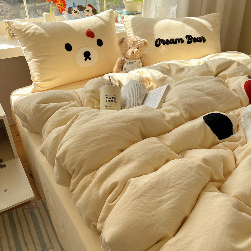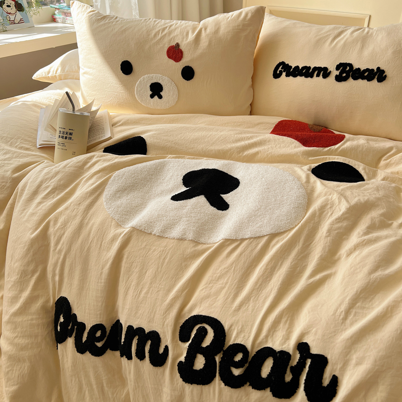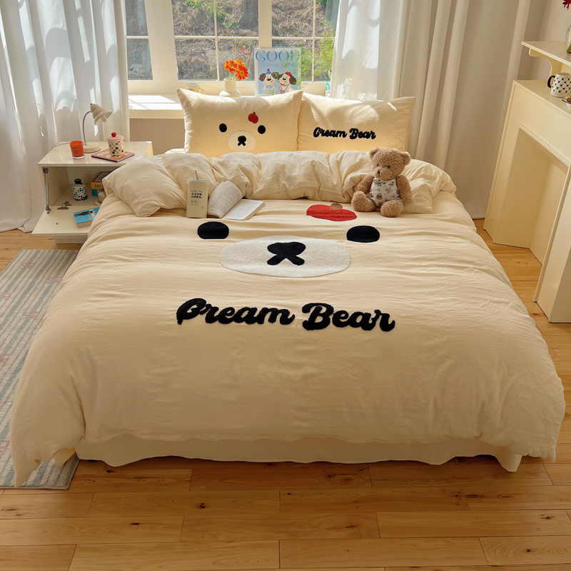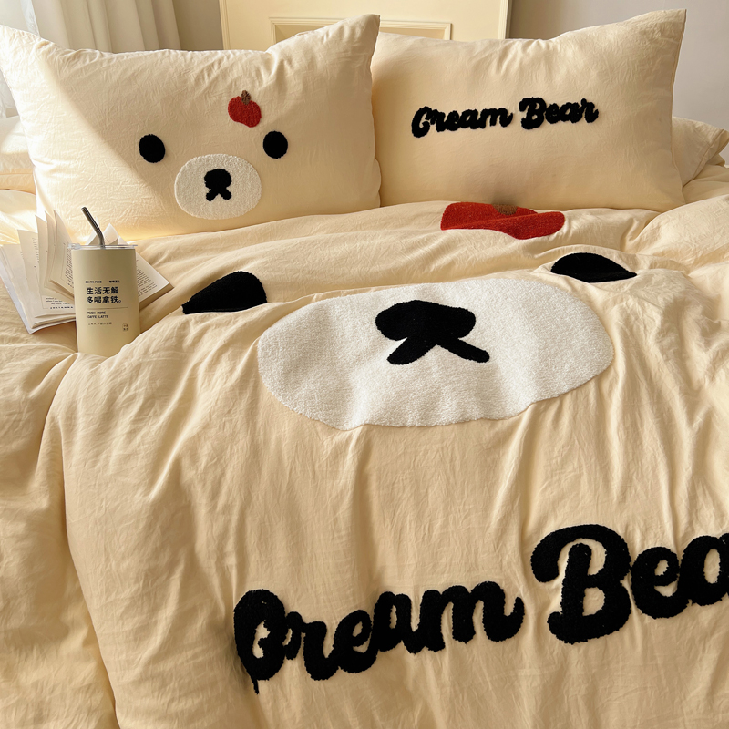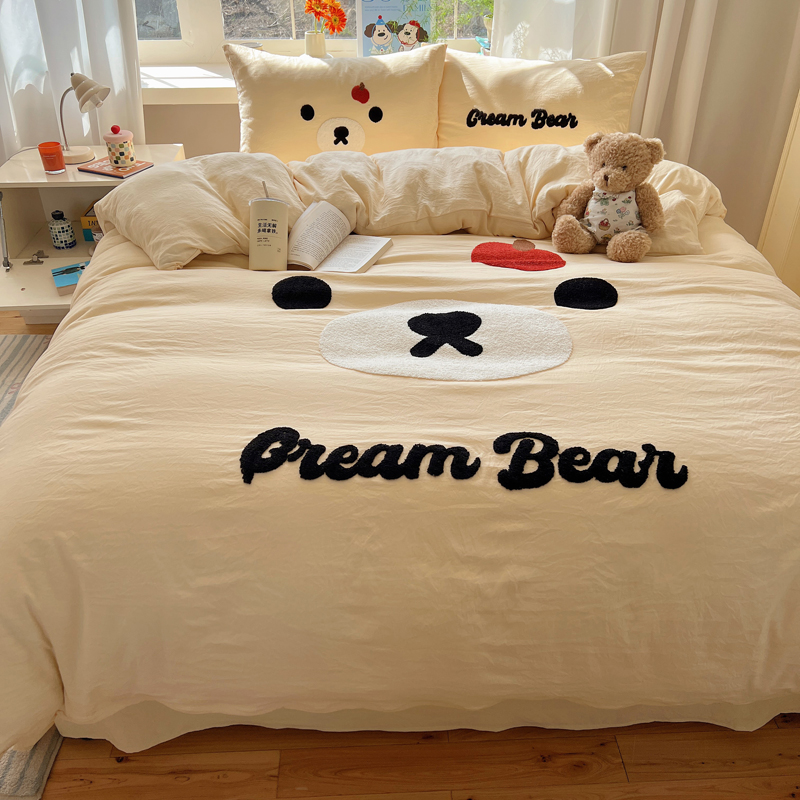 商品名称:顾里家纺 2025新款甜系表情包云朵棉毛巾绣四件套 梦想熊