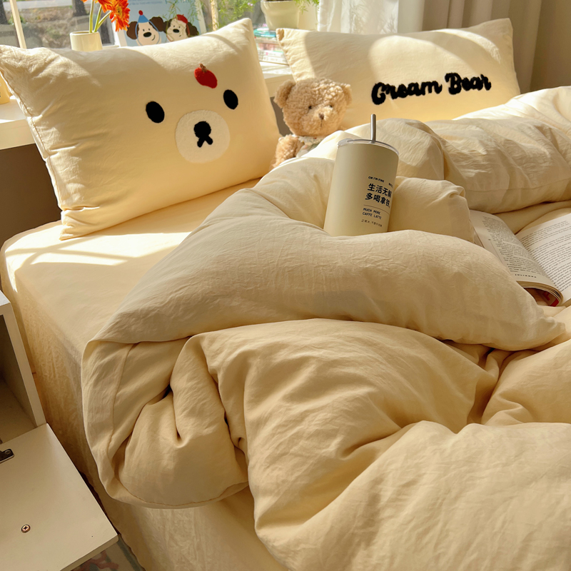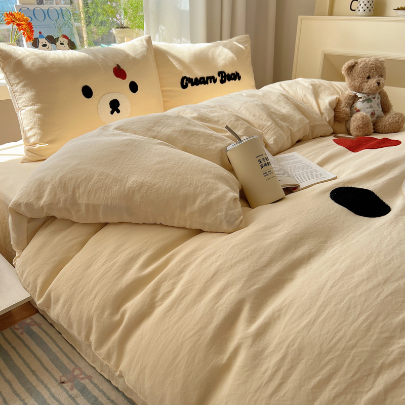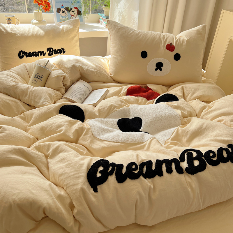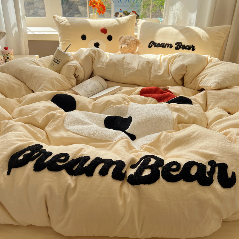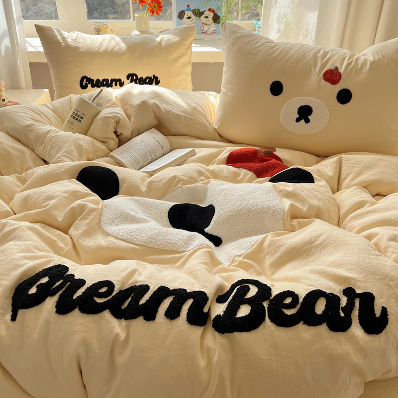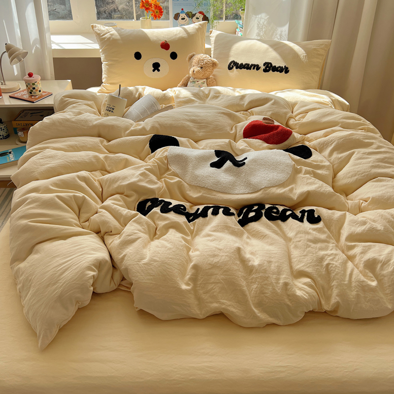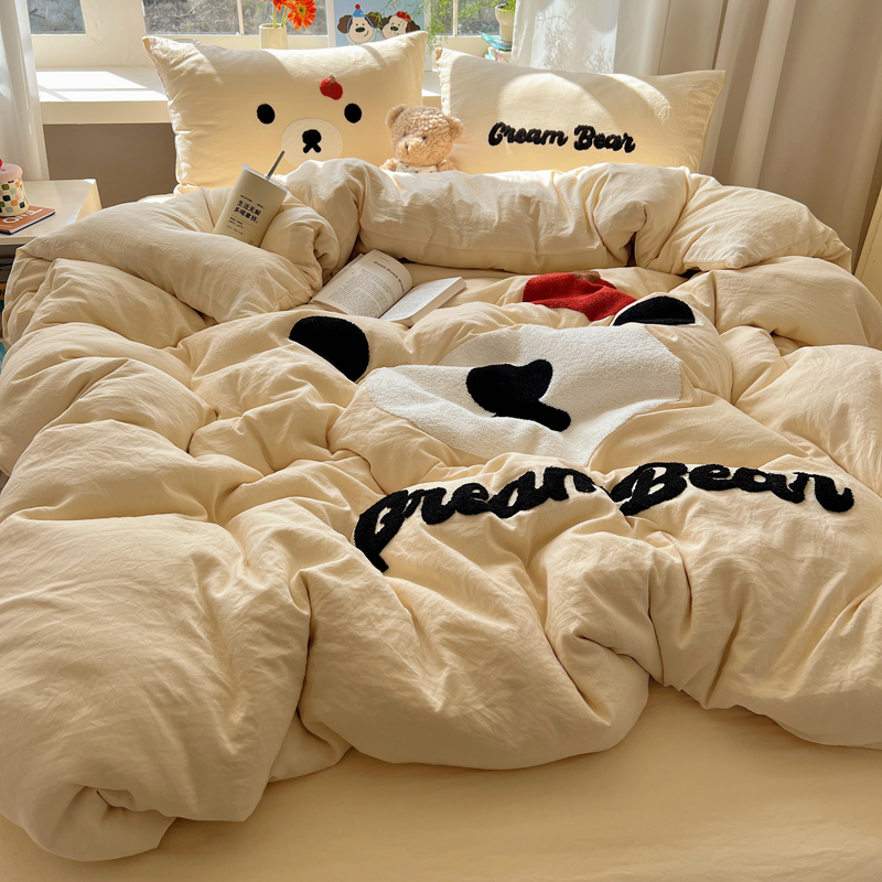 商品名称:顾里家纺 2025新款甜系表情包云朵棉毛巾绣四件套 梦想熊