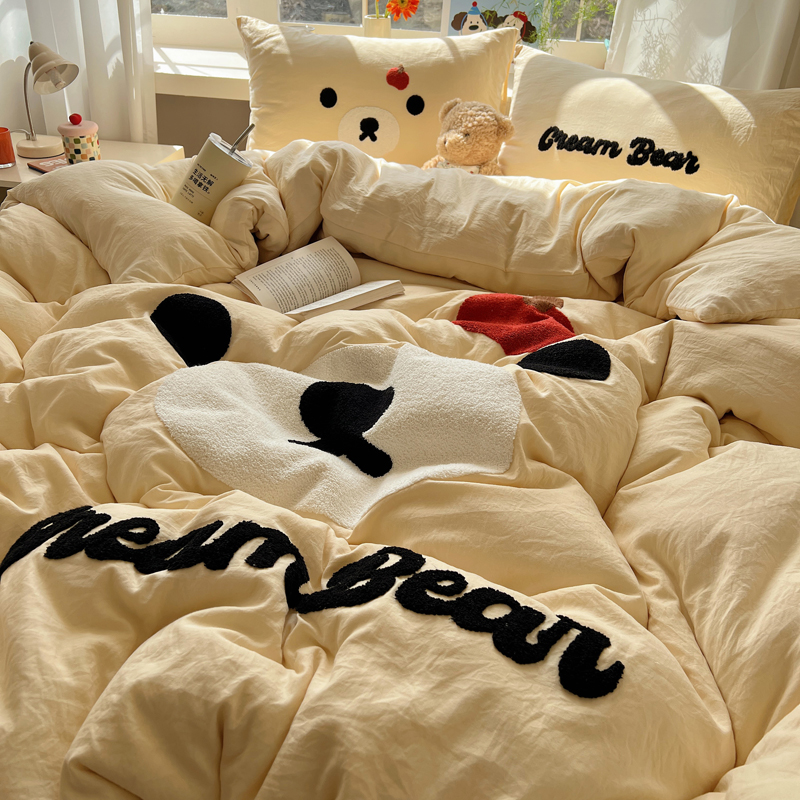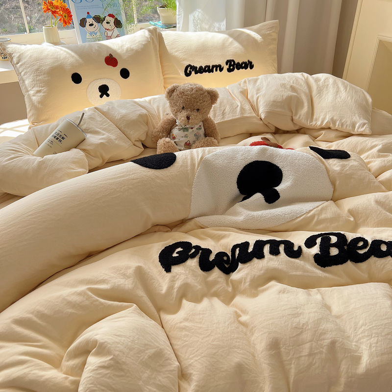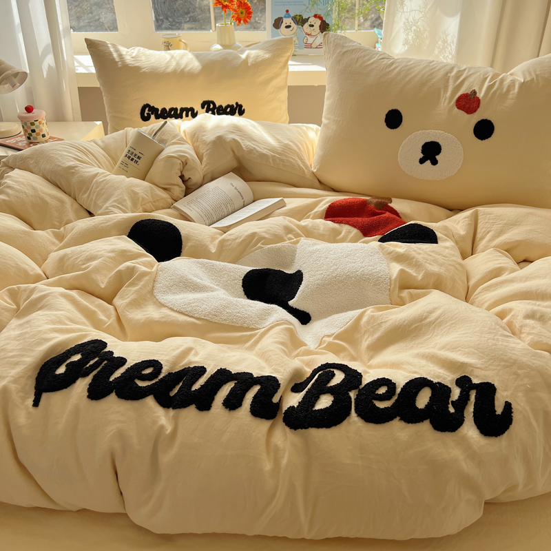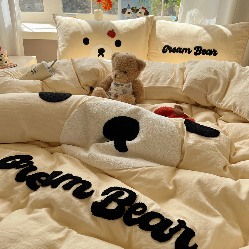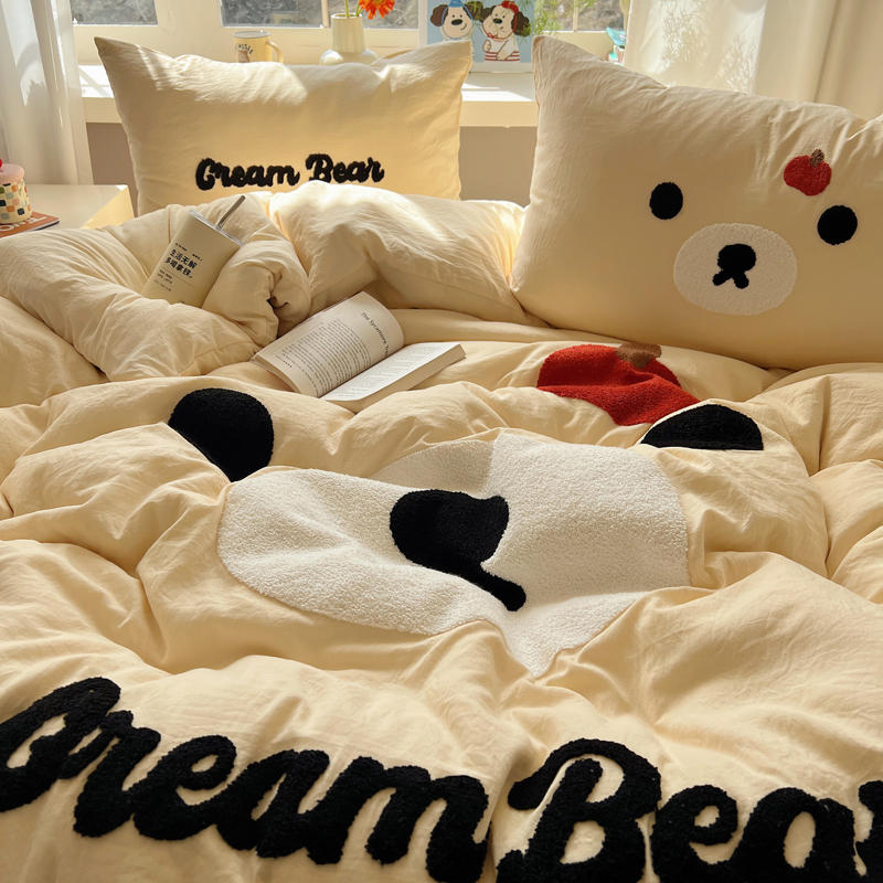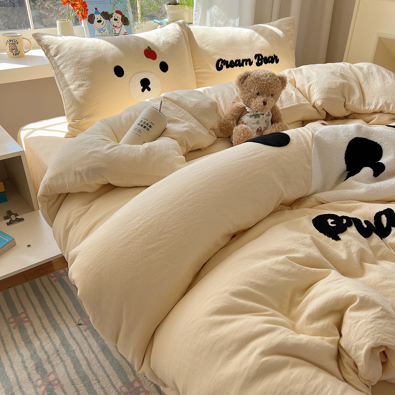 (总)顾里家纺 2024新款ins韩风甜感刺绣标牛奶绒四件套,蛋糕狗狗,烛台小熊,ins可颂,ins苹果,ins沙发狗,ins小象,ins樱桃猫