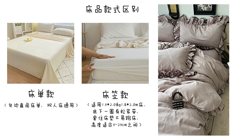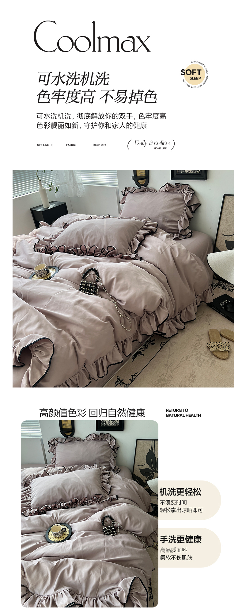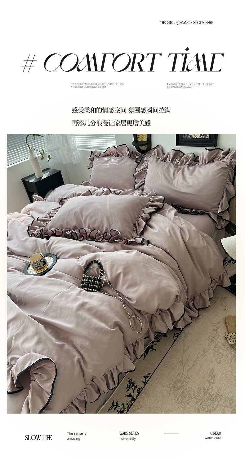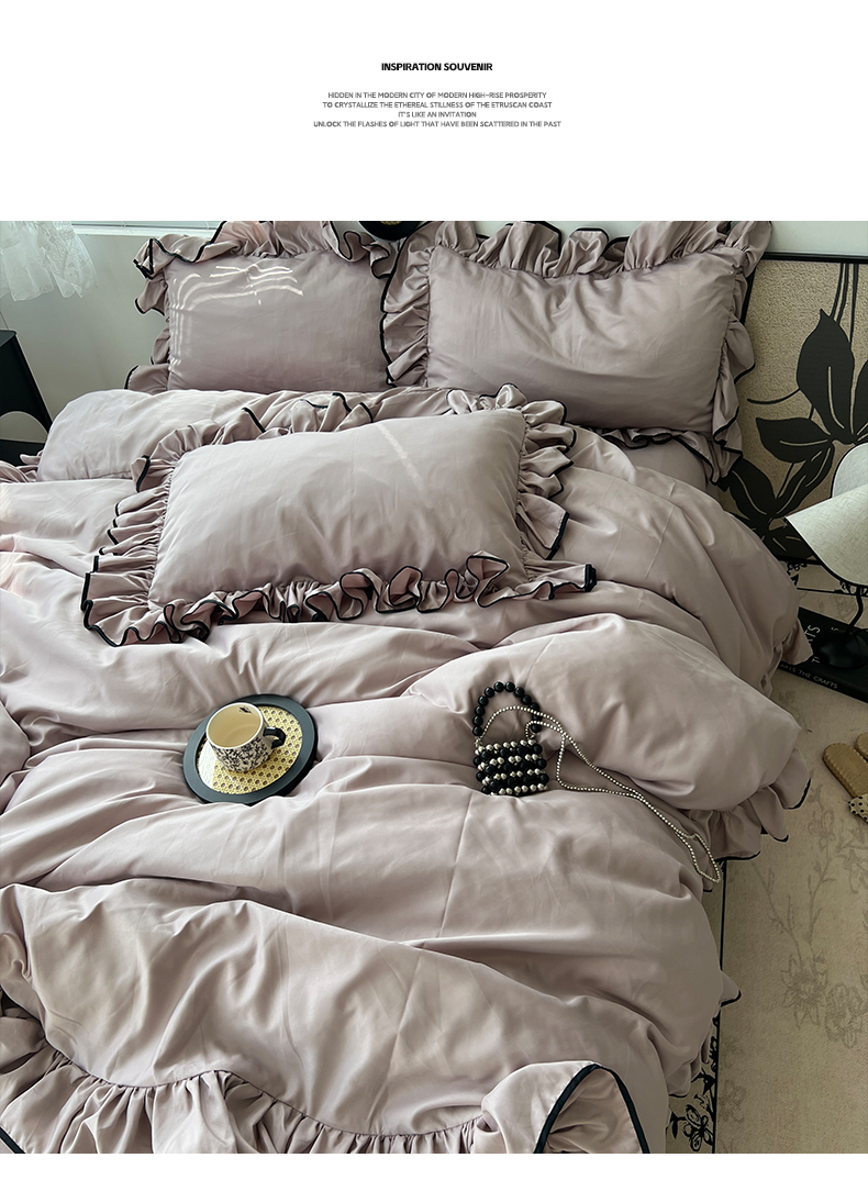 商品名称:原素 2025夏季冰丝韩系大花边水洗真丝四件套 沐言-香槟紫