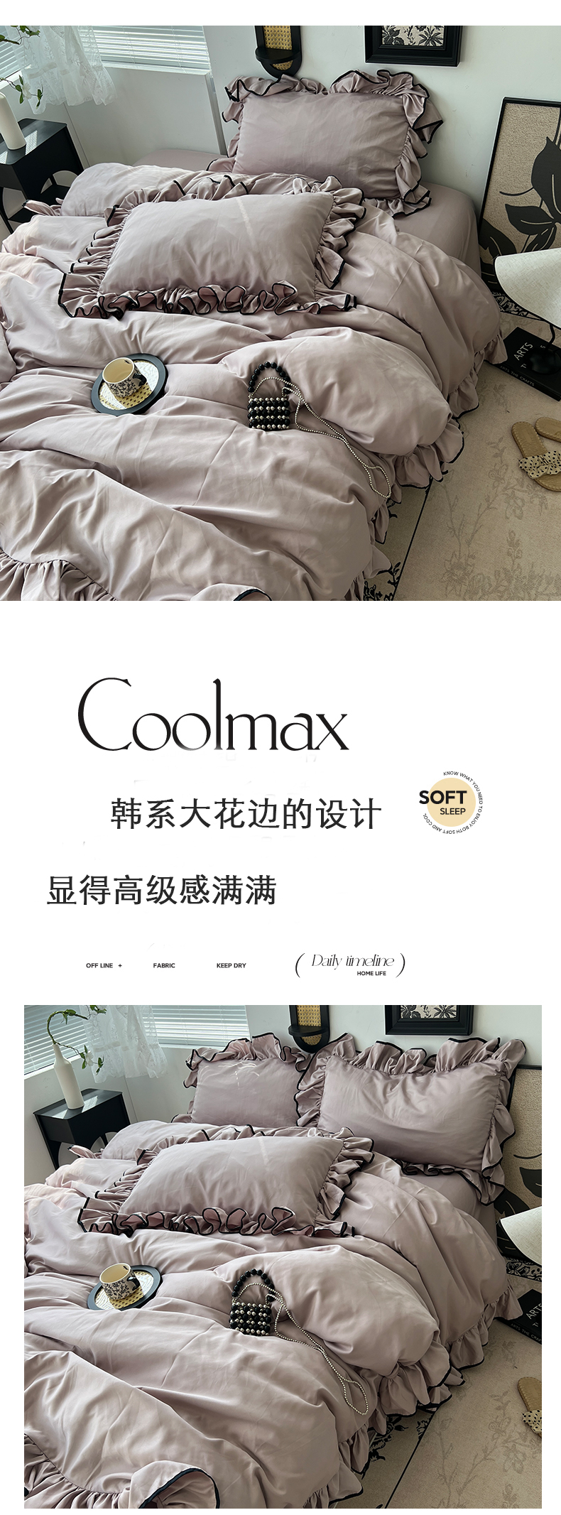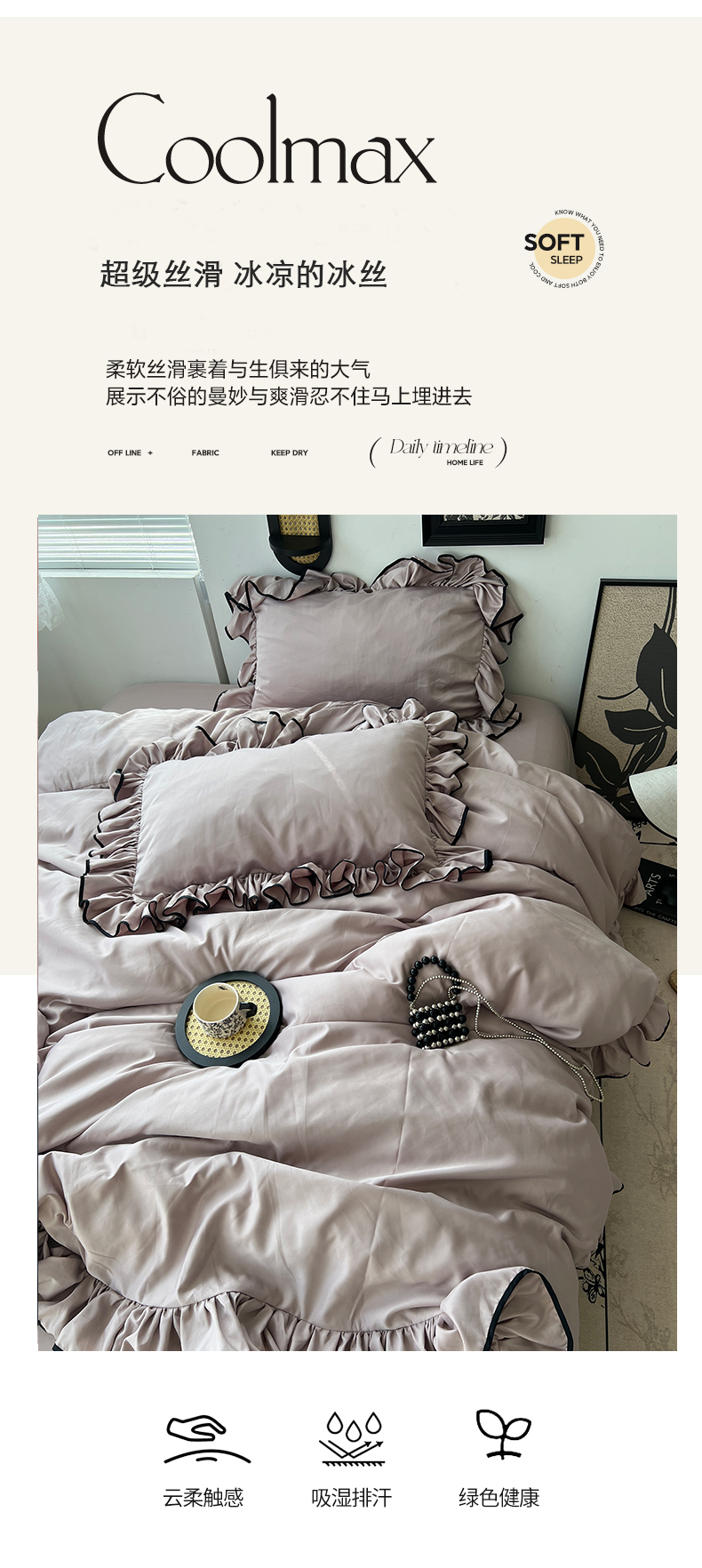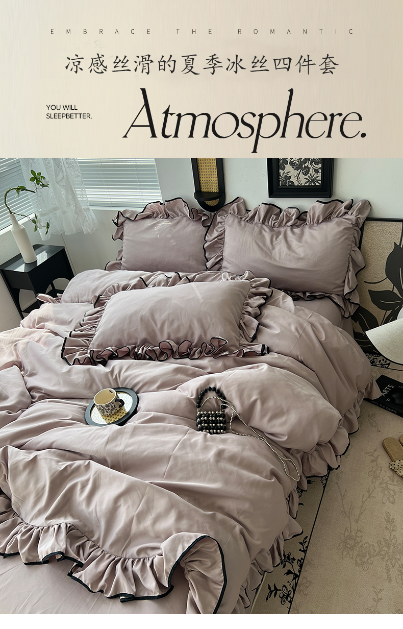 原素 2025夏季冰丝韩系大花边水洗真丝四件套 沐言-香槟紫