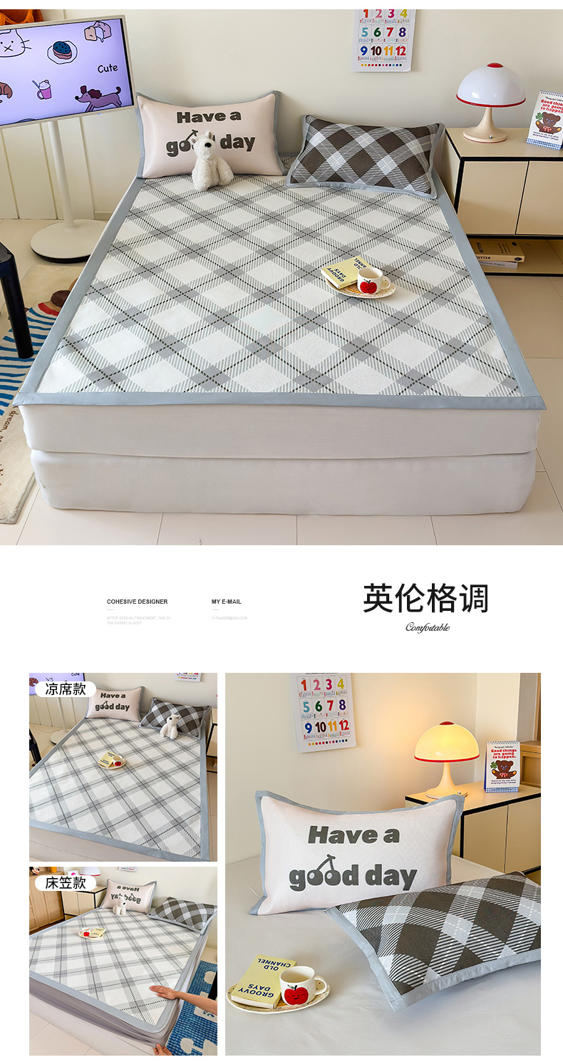 商品名称:安哆啦家纺 2025新款A类印花冰藤凉席简约条格系列凉席席子 蓝格花海-床席款