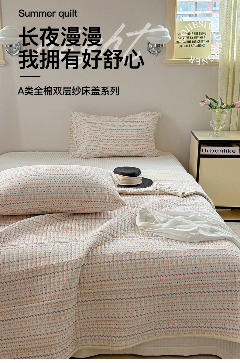 商品名称:TT.one 塔塔家居 2025新款全棉双层纱贝壳边夏被系列 床盖·波浪条