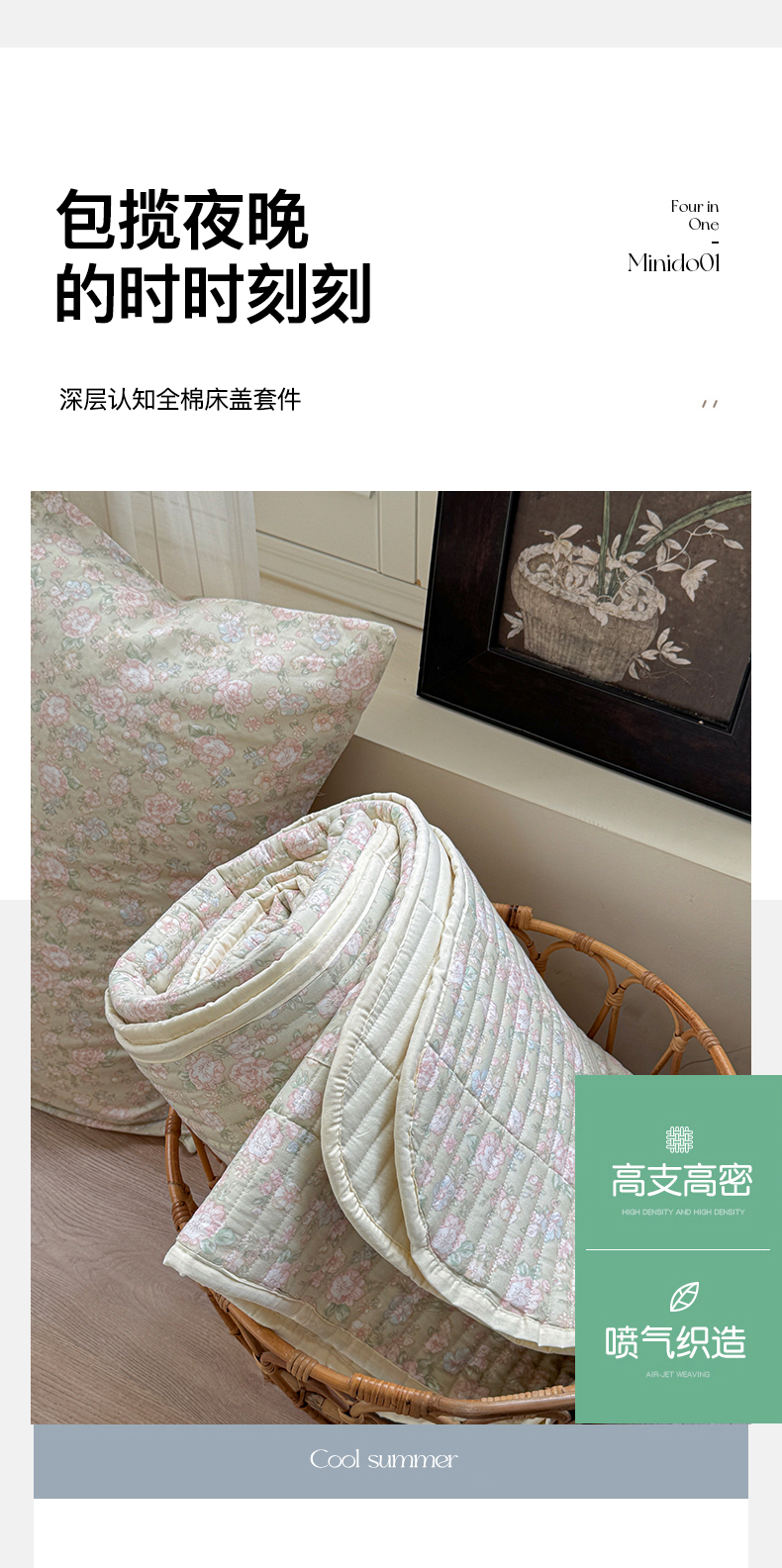 (总)塔塔 2025新款法式田园全棉针织棉花边印花夏被,花奈,假日,洛可可,漫恋,木槿,浅汐,小樱桃,洋兰