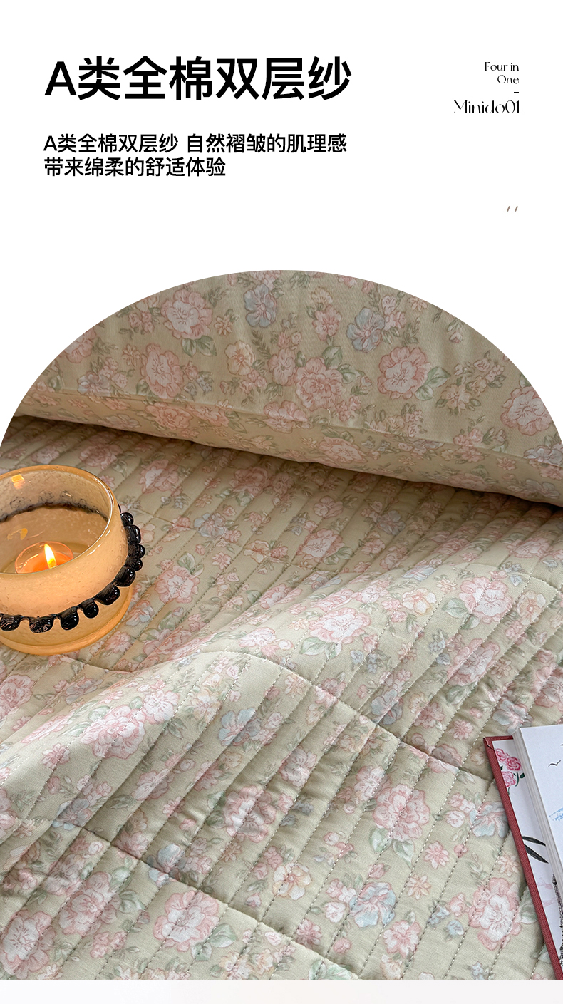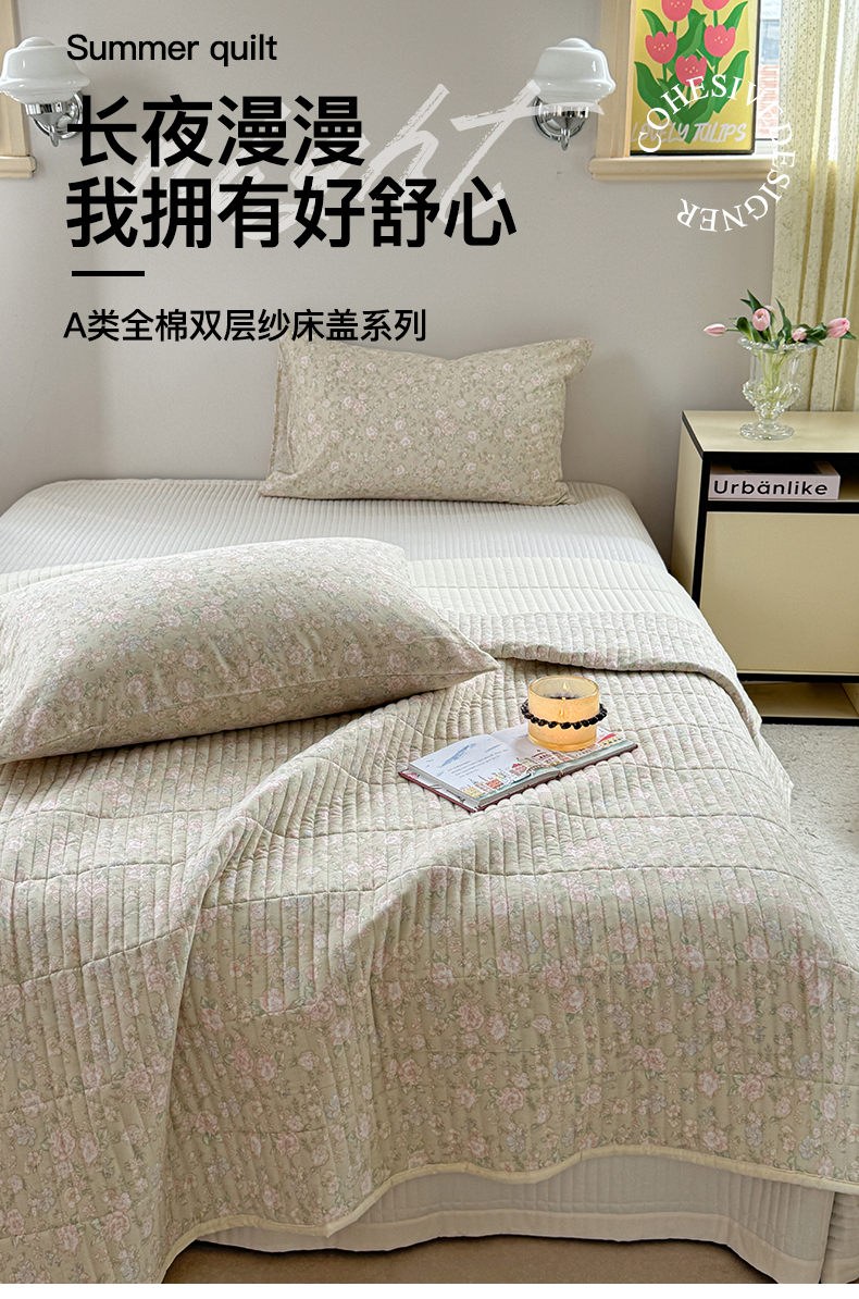 商品名称:TT.one 塔塔家居 2025新款全棉双层纱贝壳边夏被系列 床盖·茉香