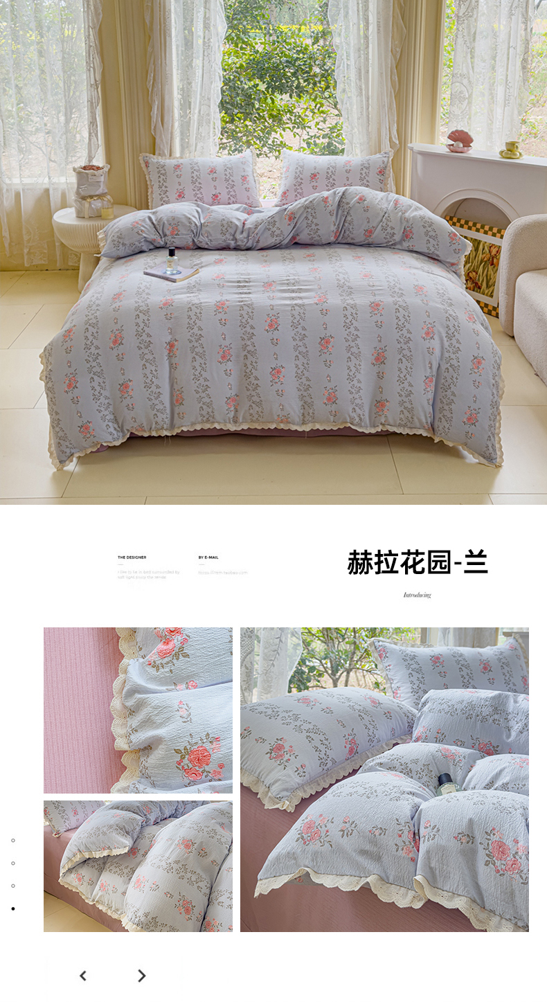 商品名称:可思家纺 2025新款法式皱皱纱四件套 赫拉花园-兰