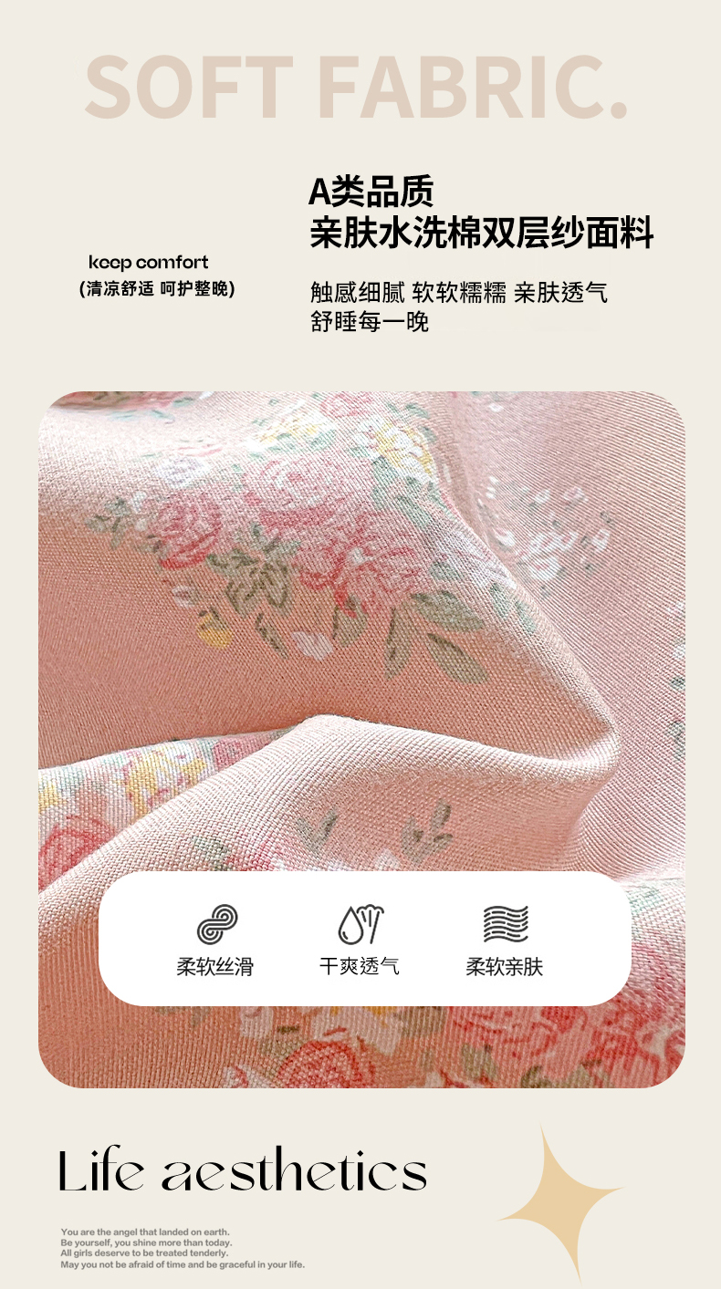 (总)妖妖家纺 2023新款超柔水洗双层纱三件套宿舍床,风铃花,后花园,花儿与兔,及风情,尽相思,静谧,可爱棕熊,兰花草,柿柿如意,涂鸦爱心,夏日樱桃,小熊花园,月季花香