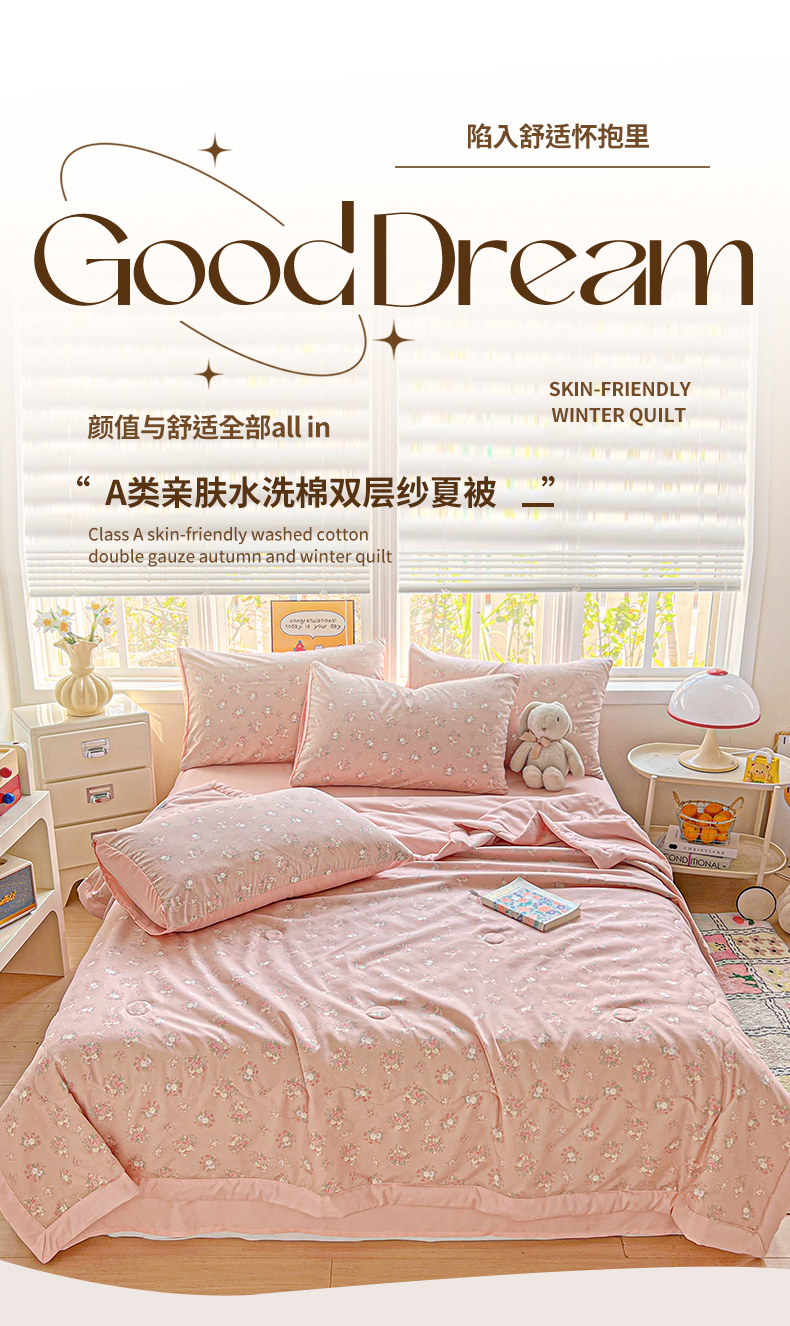 妖妖家纺 2025新款糯糯棉宽边夏被夏凉被空调被 花茎