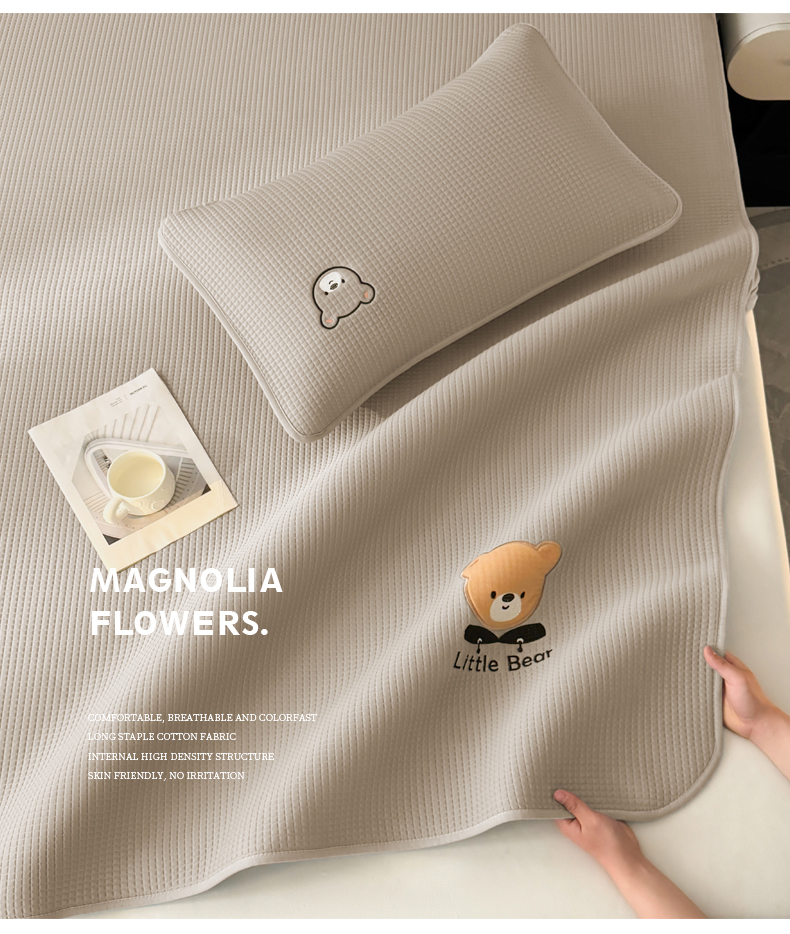 (总)爱思凯家纺 2025新款学生儿童房泡泡绒床单-松饼熊,松饼熊床单-卡其,松饼熊床单-粉,松饼熊床单-灰,松饼熊床单-蓝灰,松饼熊床单-绿,松饼熊床单-奶白